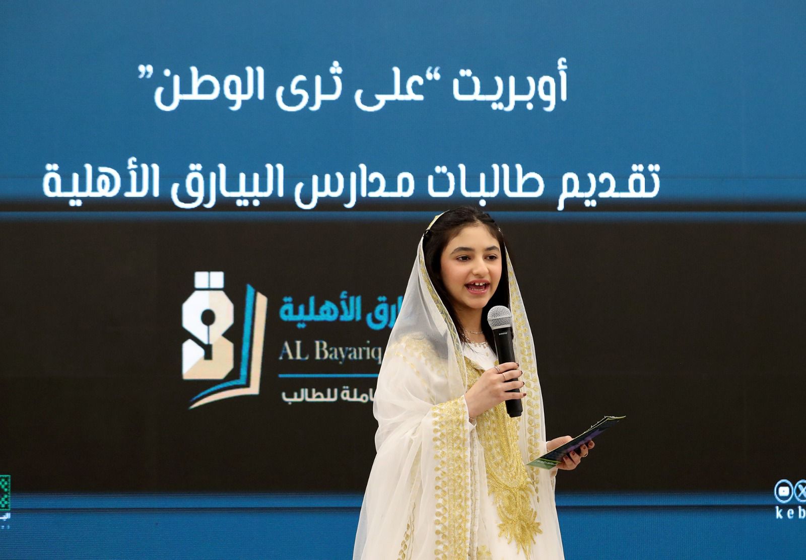 كما تضمن الحفل إلقاء قصيدة شعرية وأوبريت وطني بعنوان (على ثرى الوطن) قدمته طالبات مدارس البيارق الأهلية، إلى جانب مسابقات وطنية شارك فيها الحضور.