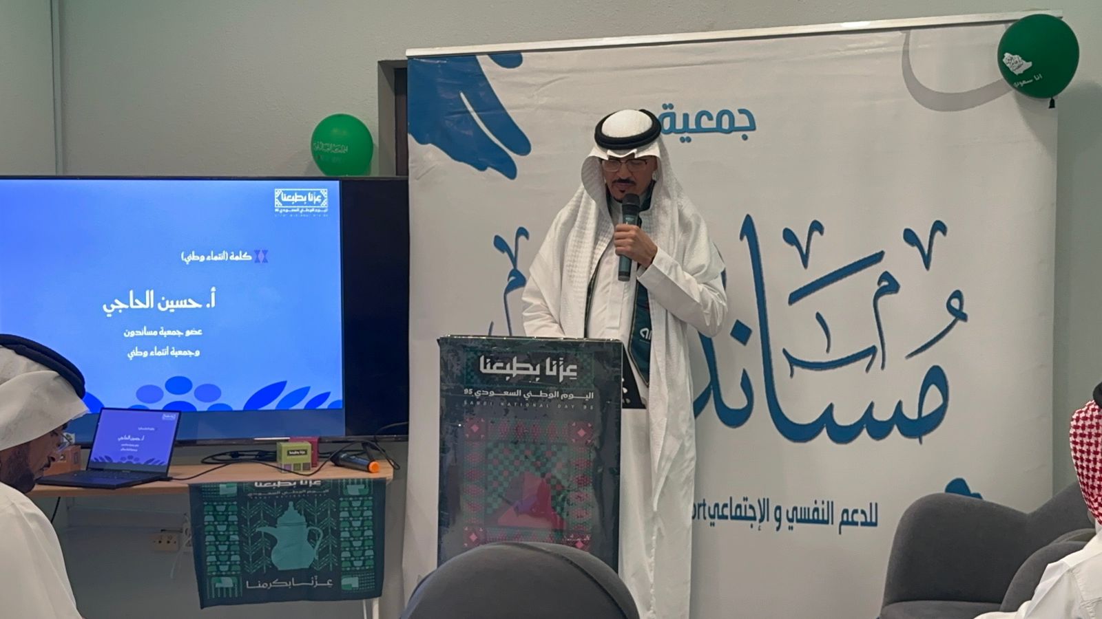 احتفت جمعية مساندون للدعم النفسي والاجتماعي باليوم الوطني مع أعضائها وعدد من الحضور الواسع من منسوبي القطاع الغير ربحي وجمع من الوجهاء ورجال الاعمال ، حيث استُهل الحفل بالسلام الملكي السعودي، في أجواء وطنية مفعمة بالفخر والانتماء.