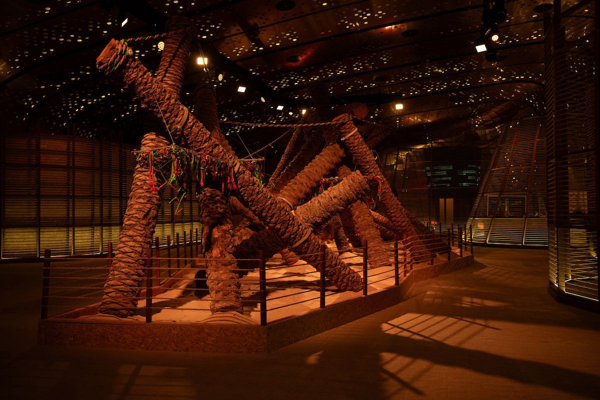 ويضم المعرض 15 عملًا فنيًا لـ 25 فنانًا من داخل المملكة وخارجها، بإشراف القيّمين الفنيين "سامر يماني" و"رزان مصري"، في تجربة فنية تستكشف حضور النخيل في الذاكرة، وتعيد قراءتها من منظورٍ جمالي يجمع بين الفن والتراث وبين الماديّ والرمزيّ، إذ يعكس تصميم المعرض دلالات متعددة من خلال فضاءات فنية تتداخل فيها عناصر النخلة من خشبٍ وحبالٍ وليف، لتصوغ مشهدًا بصريًا يشبه العريش الذي يظلل الذاكرة.