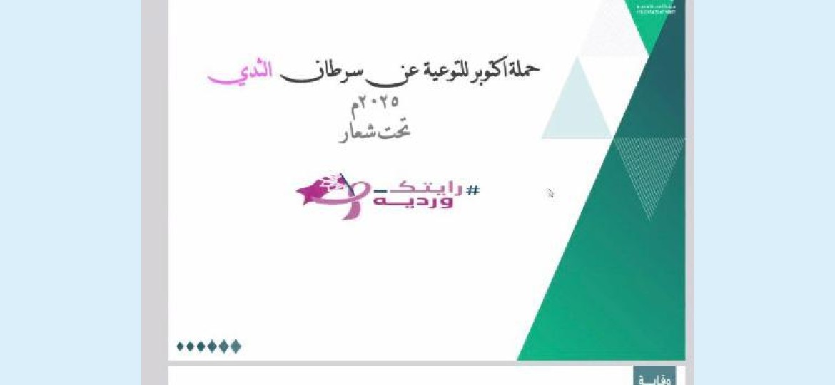 أقامت الإدارة العامة للتعليم بمحافظة الطائف اليوم الثلاثاء، لقاءً توعويًا عن بعد بعنوان “سرطان الثدي”، تحت شعار رايتك وردية؛ بحضور الموجهات الصحيات في كافة مدارس التعليم، ويأتي تزامنًا مع شهر التوعية بسرطان الثدي 2025.