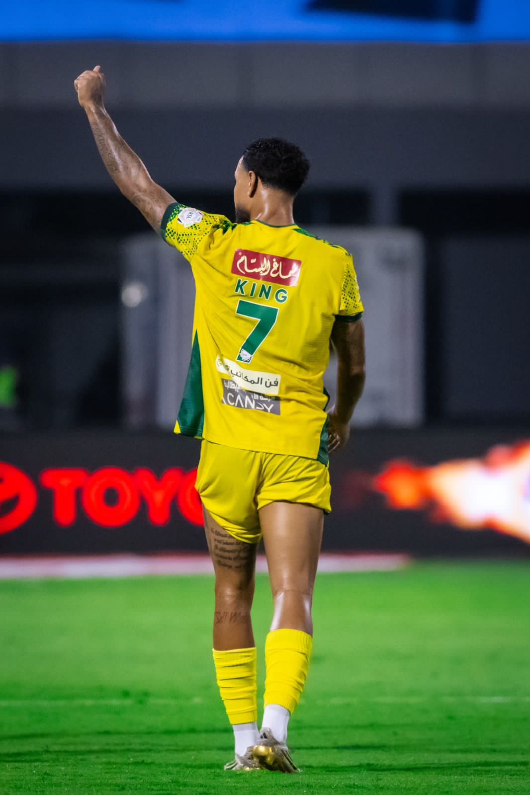 وقبل نهاية الشوط الأول، قلص الرياض الفارق بهدفه الوحيد، إلا أن هذا الهدف لم يزعزع ثقة أبناء الدانة في الشوط الثاني، حيث واصل كينغ تألقه مسجلًا الهاتريك الأول له هذا الموسم بعد تمريرة رائعة من اليوناني كوستاس فورتينيس، الذي عاد ليصنع الهدف الرابع لزميله ماسوراس في الدقيقة 66، ليبرز الثنائي اليوناني كأحد نجوم اللقاء إلى جانب كينغ.