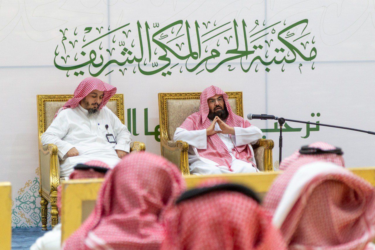 وقاغ رئيس الشؤون الدينية: ان نشر الرسالة العلمية العالمية الحضارية، التي هي صميم رسالة الحرمين الدينية العالمية، المشار إليها في قوله تعالى: ﴿مُبارَكًا وَهُدًى لِلعالَمينَ﴾ [آل عمران: ٩٦]، وإذا لم تكن الهدايات عبر نشر العلم والكتاب والمصحف والبحث العلمي؛ فأين تكون الهدايات. واوضح رئيس الشؤون الدينية ان العناية بالمخطوطات والبحث العلمي، ومراكز البحث، واستكتاب الباحثين؛ لتفعيل رسالة الحرمين الدينية، أولوية مطلقة في رئاسة الشؤون الدينية مؤكدا الاهتمام بالرقمنة، والتقانة، واللغات، والترجمة، وترجمة الكتب؛ لتصل منجزات المكتبة الدينية، ورسالة الحرمين الشريفين الدينية إلى العالم.