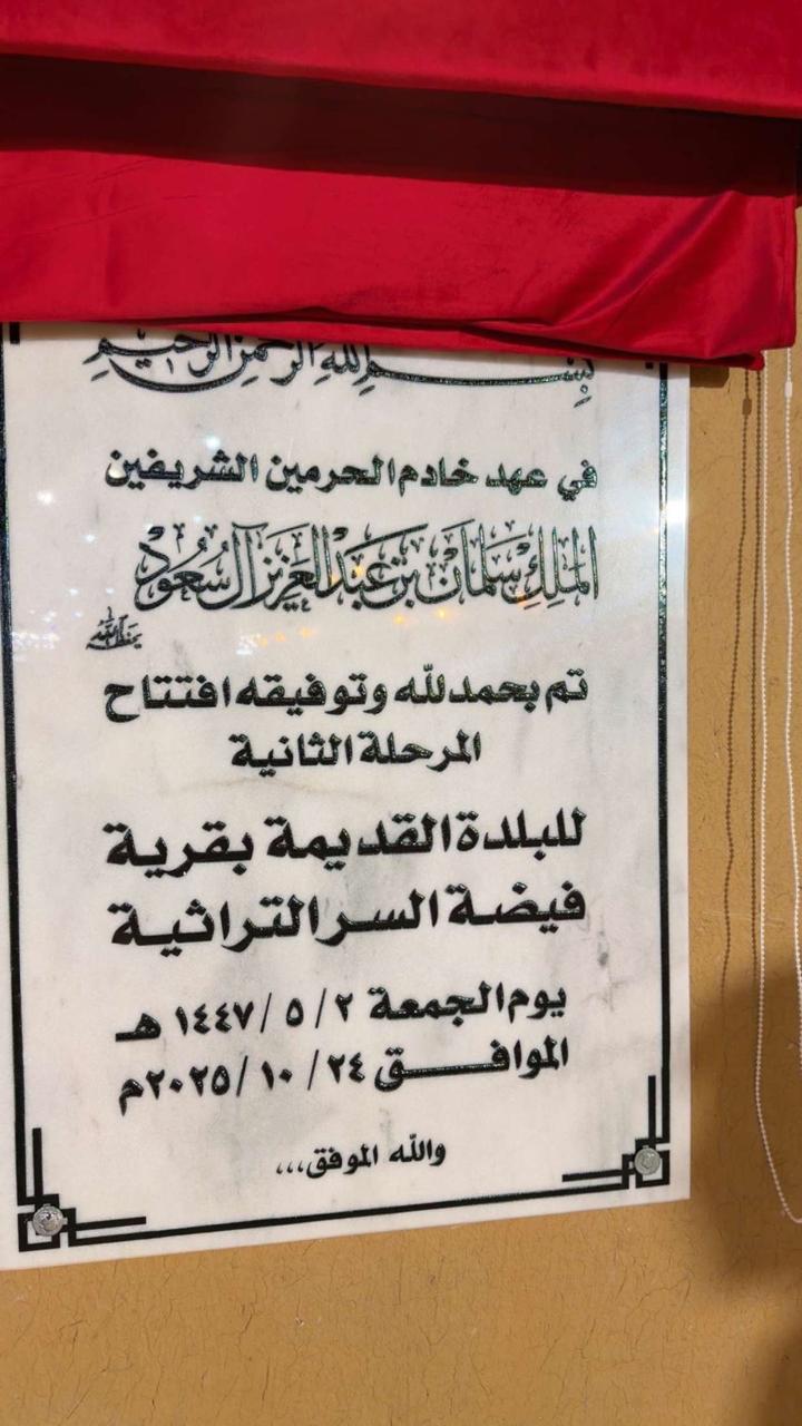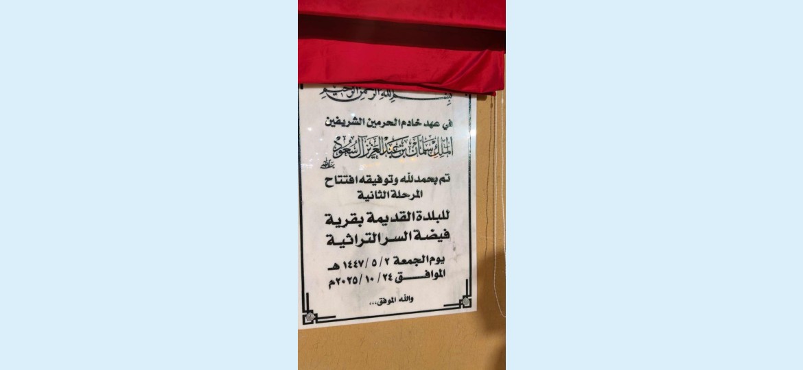 في أجواء احتفالية تعكس الاهتمام المتواصل بالعناية بالموروث الوطني والمحافظة على الهوية الثقافية، تم بحمد الله وتوفيقه افتتاح المرحلة الثانية للبلدة القديمة بقرية فيضة السر التراثية، وذلك يوم الجمعة 3 جمادى الأولى 1447هـ الموافق 24 أكتوبر 2025م.