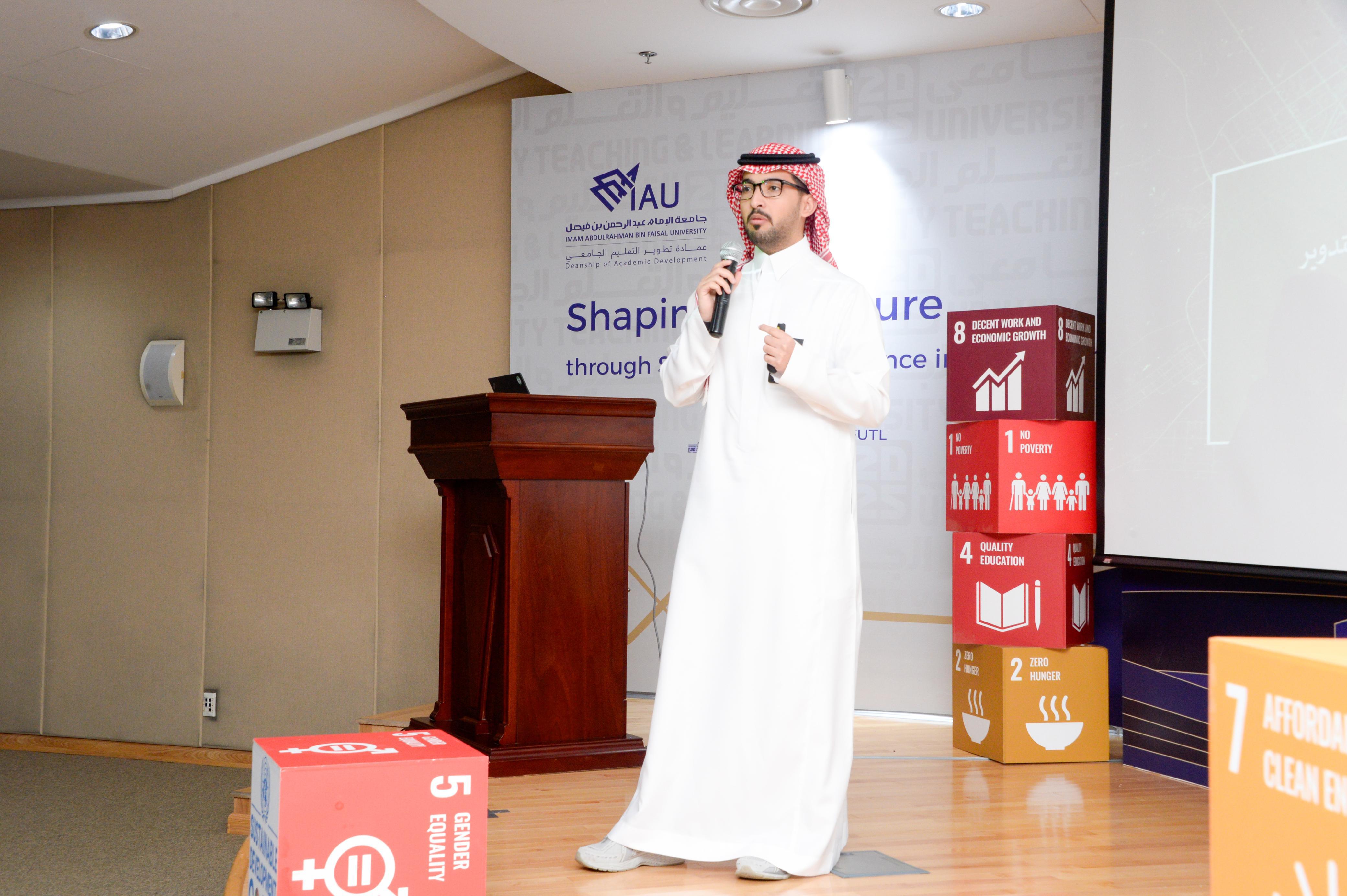 من جانبه أشار نائب رئيس الجامعة للتطوير والشراكة المجتمعية أ.د. عاصم بن عبدالرحمن الأنصاري أن هذه الورشة تاتي ضمن خطة الجامعة للتوعية بأبرز قضايا التنمية المستدامة ونشر ثقافة العمل الأكاديمي وموائمته مع أبرز القضايا التنموية الوطنية والعالمية وإشراك الطلاب في مستجداتها بما يحقق أحد مرتكزات خطة الجامعة الإستراتيجية ( أثر مستدام ) وتهيئة الطلبه والمتوقع تخرجهم بتثقيفهم في المستجدات الوطنية في قطاع التنمية اجمالا وحرص رئيس الجامعة وتوجيهاته بتعزيز العمل المؤسسي بالجامعة واهداف التنمية المستدامة .