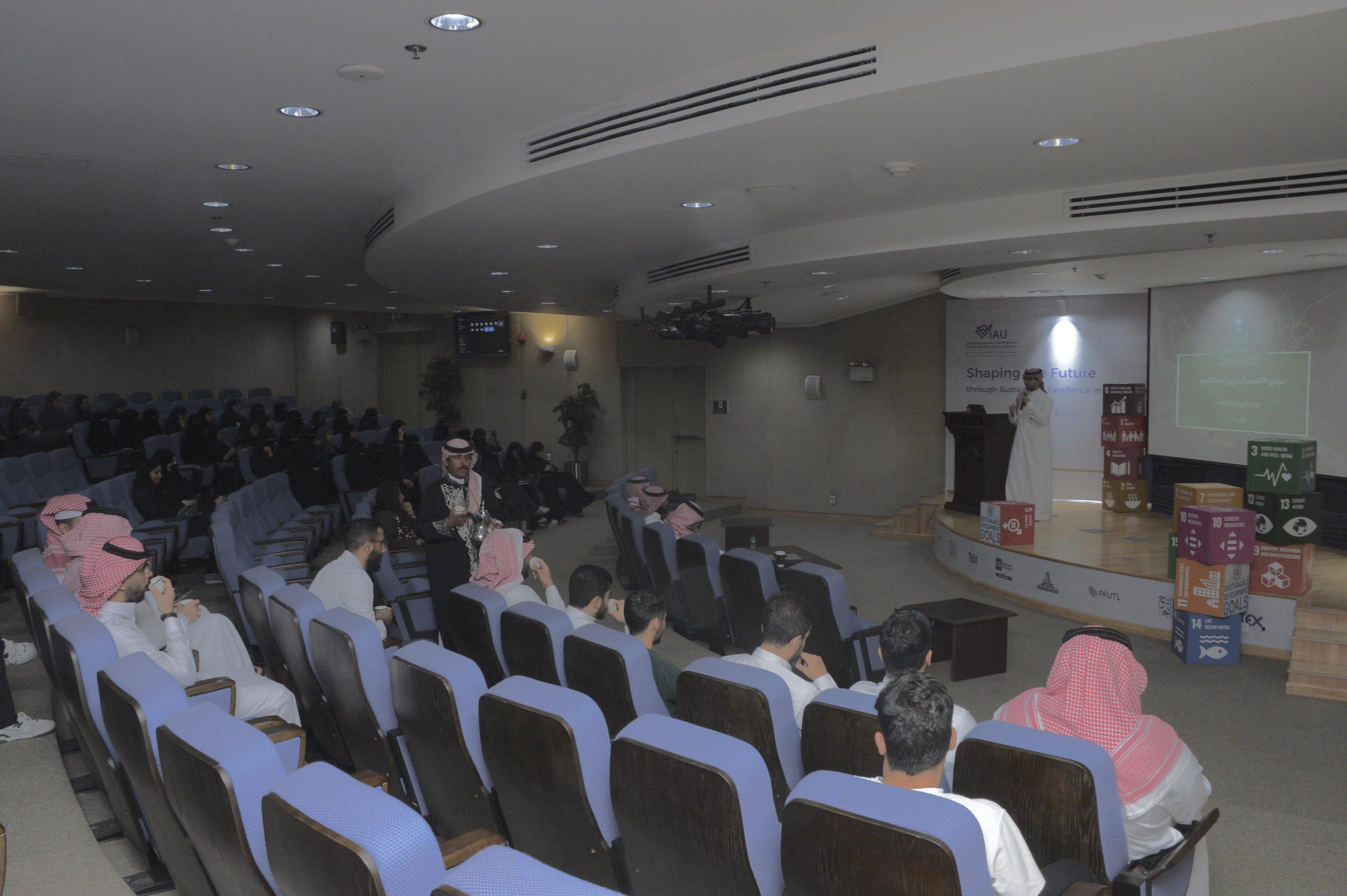 ولفت مدير وحدة التنمية المستدامة بالجامعة الدكتور فهد بن محمد اليامي بأن هذا النشاط يأتي ضمن الخطة السنوية لوحدة التنمية المستدامة بتفعيل الشراكات الخاصة مع كافة الجهات الحكومية والخاصة والقطاعات الغير ربحيه ذات العلاقة بالعمل التنموي والمستدام بشكل منهجي ومؤسسي على حد سواء و يتوافق ورسالة الجامعة الأكاديمية وأهدافها الاستراتيجية، وأن هذه الورشة جاءت لعرض أبرز المبادرات المقدمة من وزارة البيئة والزراعة والمياه في مجال تدوير المخلفات بأنواعها وحماية البيئة وعرض أبرز توجهات المملكة العربية السعودية في المجال البيئي بحضور 60 طالباً وطالبة من مختلف كليات الجامعة الصحية والهندسية والعلمية .