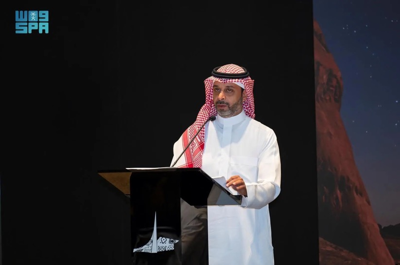 وألقى معاليه كلمة نيابة عن سمو وزير الثقافة، أوضح من خلالها أن المعرض بمحتواه المعرفي الثري، إنما يلفت الانتباه إلى القيمة الفريدة لجغرافية وتاريخ المملكة، ويؤكد ما للمتاحف من أهمية معرفية وإنسانية بالغة، إضافة إلى دوره في تعميق جوهر الشراكة مع مركز "إثراء" ونخبة من العلماء والمؤرخين والفنانين.