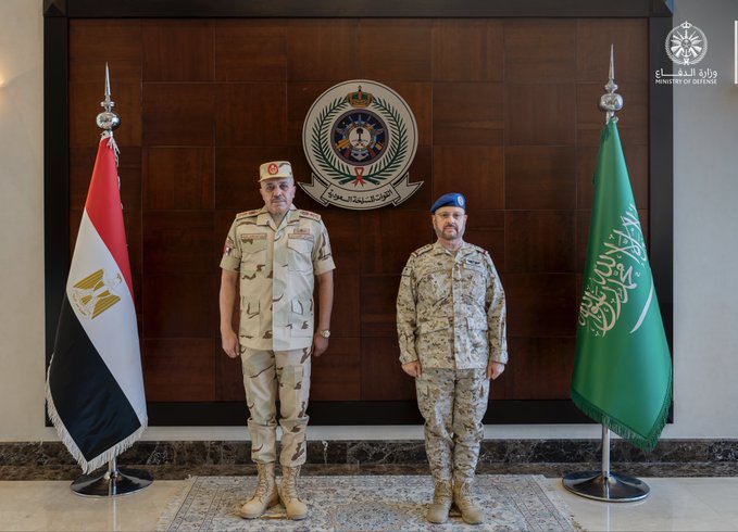 بحث رئيس هيئة الأركان العامة الفريق الأول الركن فياض بن حامد الرويلي مع رئيس أركان حرب القوات المسلحة في جمهورية مصر العربية الفريق أسامة عسكر، علاقات التعاون الدفاعي والعسكري بين البلدين الشقيقين.