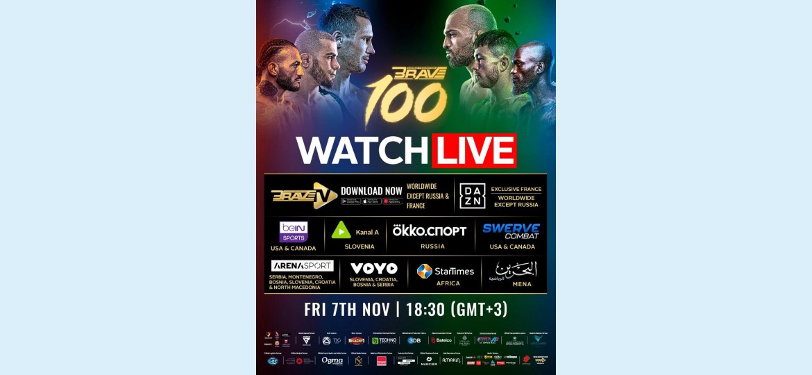تستعد مملكة البحرين لأن تكون محط أنظار العالم نهاية هذا الأسبوع، مع انطلاق النسخة المئوية التاريخية من بطولة BRAVE 100، التي تنظمها منظمة BRAVE Combat Federation البحرينية – الأسرع نمواً على مستوى منظمات فنون القتال المختلطة عالمياً – وسط أسبوع حافل من الفعاليات الرياضية والترفيهية غير المسبوقة.
