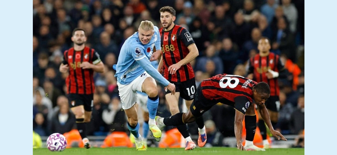 تألق النرويجي إيرلينغ هالاند بتسجيله هدفين في الشوط الأول، بعدما افتتح التسجيل في الدقيقة 17 من هجمة مرتدة سريعة، قبل أن يعادل تايلر آدامز النتيجة لبورنموث في الدقيقة 25 من ركلة ركنية.