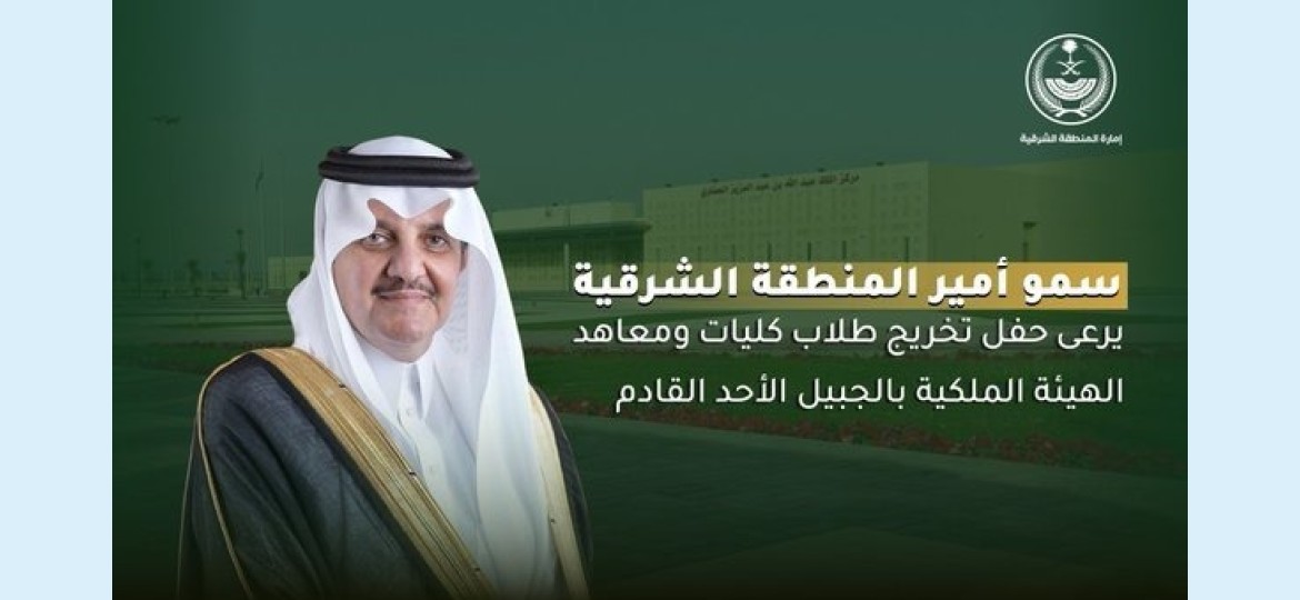 يرعى صاحب السمو الملكي الأمير سعود بن نايف بن عبد العزيز أمير المنطقة الشرقية، مساء الأحد القادم، حفل تخريج (1560) طالبًا من كليات ومعاهد الهيئة الملكية بالجبيل، يمثلون (36) تخصصًا في المجالات الهندسية والإدارية والمهنية والتقنية، بحضور الأستاذ بندر بن إبراهيم الخريف وزير الصناعة والثروة المعدنية رئيس مجلس إدارة الهيئة الملكية للجبيل وينبع، وذلك في مركز الملك عبد الله الحضاري بمدينة الجبيل الصناعية.