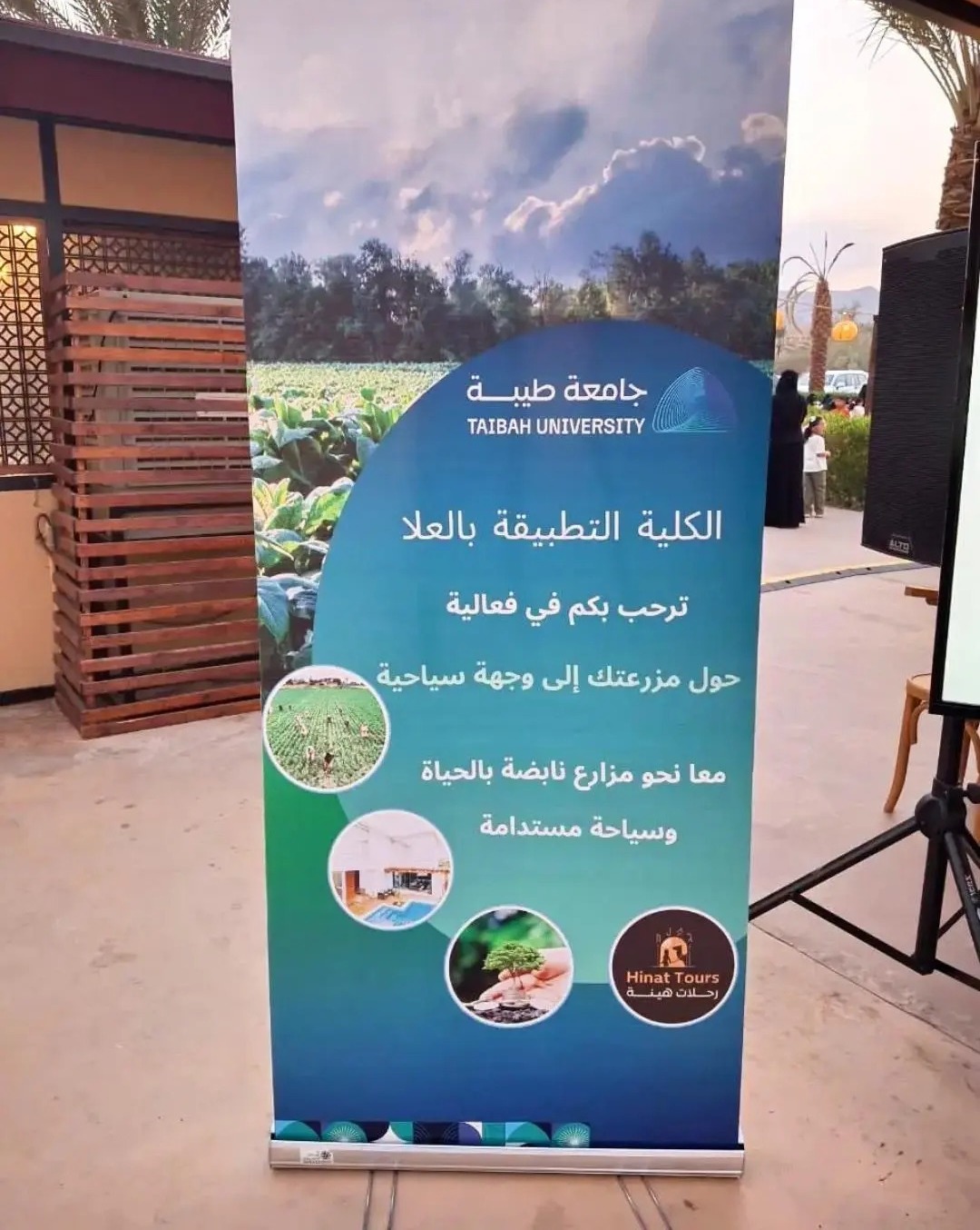 نظّمت جامعة طيبة فعالية توعوية بعنوان "حوِّل مزرعتك إلى وجهة سياحية" في سوق المزارعين بالمنشية، ضمن موسم تمور العُلا، الذي يُقام سنويًا بهدف دعم المزارعين والمهتمين بزراعة النخيل وتطوير الصناعات المرتبطة بالتمور.