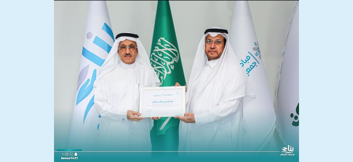كرم الرئيس التنفيذي للجمعية الخيرية لرعاية الأيتام بالمنطقة الشرقية (بناء) عبدالله بن راشد الخالدي، المتطوع عبدالرحمن بن خالد بوعلي، تقديراً لجهوده المتميزة وعطائه المتواصل في خدمة الأيتام وأسرهم ضمن منظومة التطوع في بناء، وذلك في إطار سعي الجمعية إلى تعزيز ثقافة الاستدامة في العمل التطوعي وتكريم النماذج المُلهمة في هذا المجال.