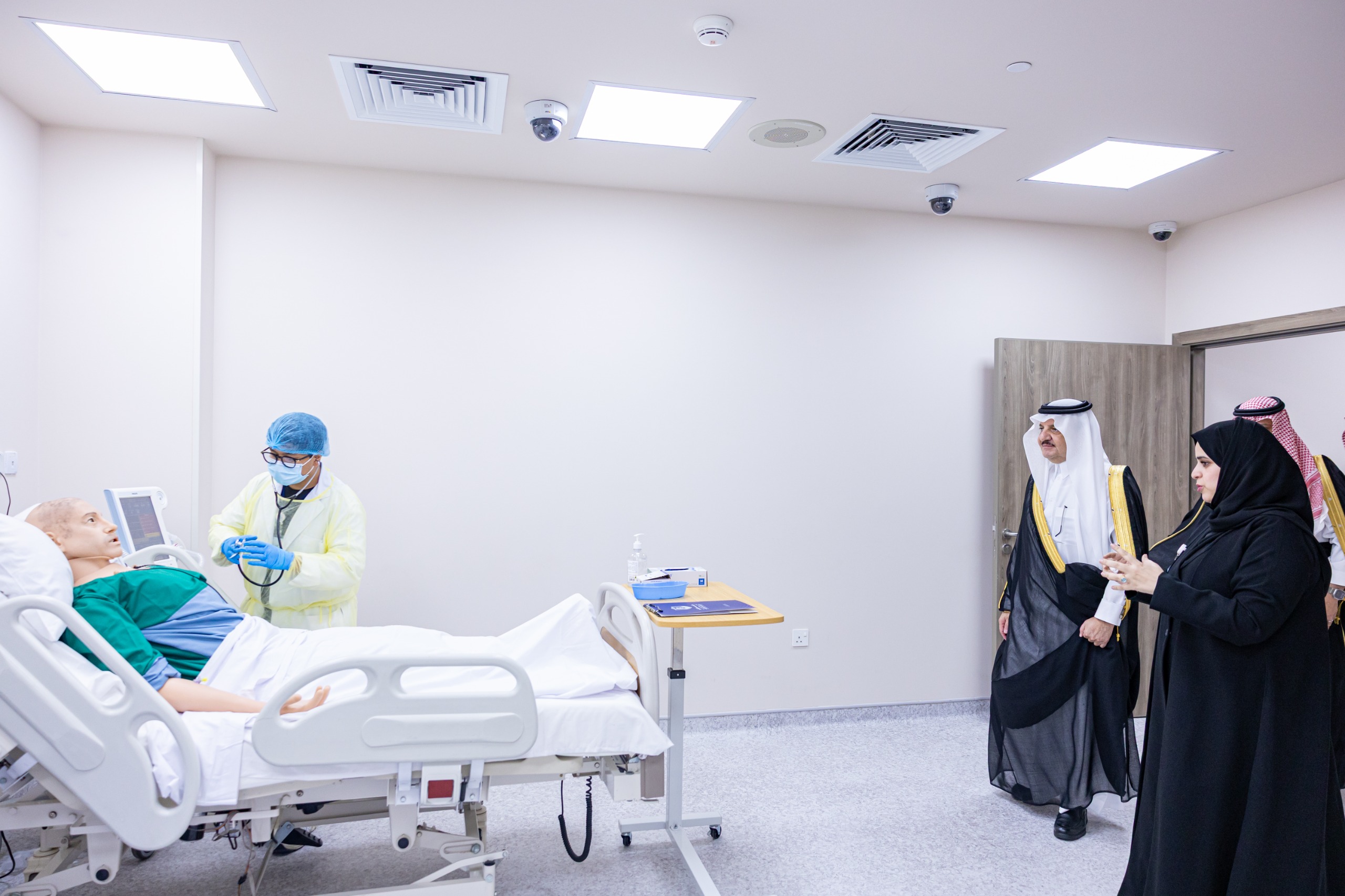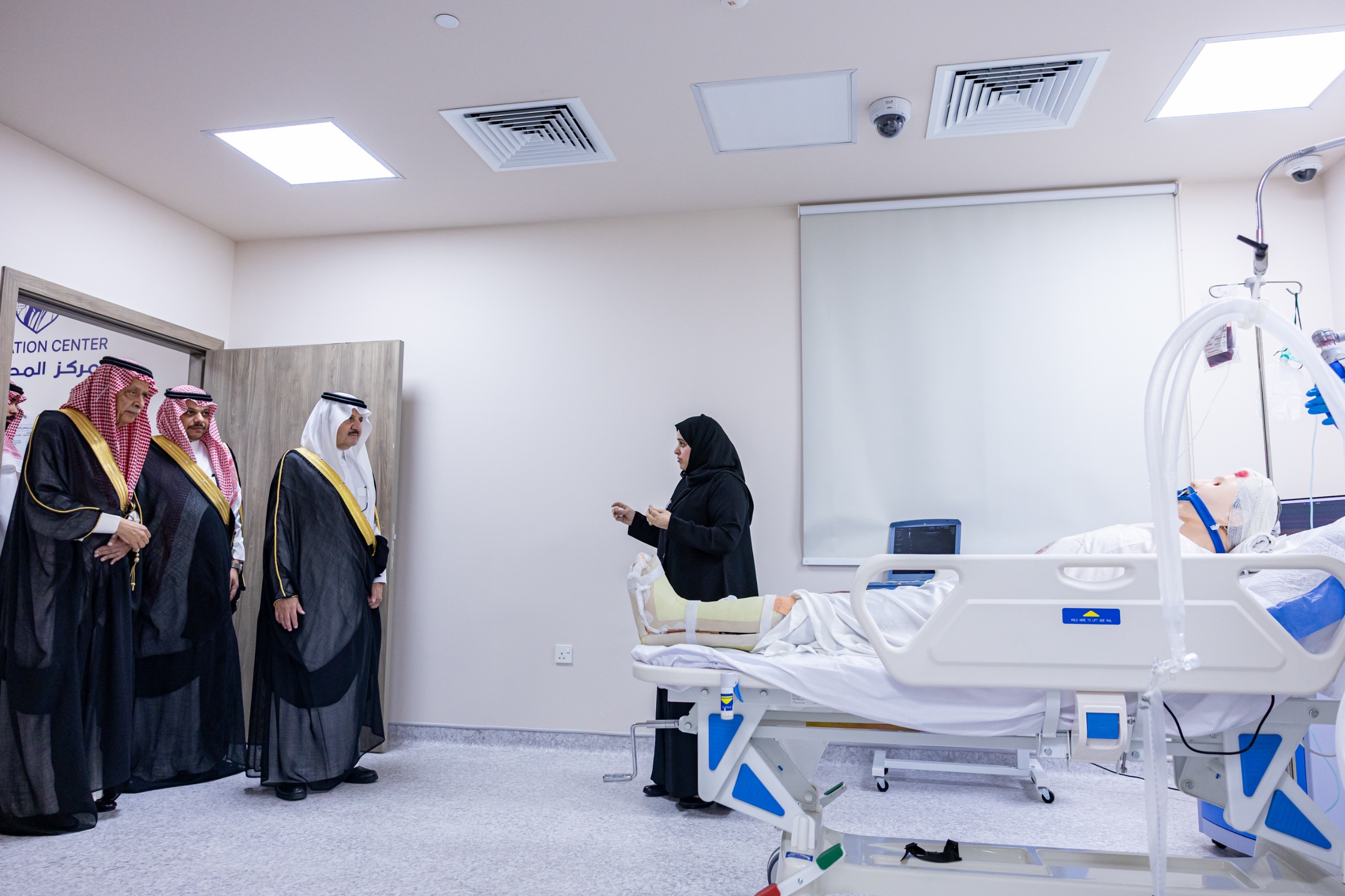 وقدمت الدكتورة فريال القحطاني عميدة الكلية شرحاً عن المركز الذي بني على مساحة 4190 مترًا مربعًا ويتكوّن من أربعة طوابق صُمّمت لمحاكاة بيئة المستشفيات الواقعية بطاقة استيعابية تصل إلى 600 متدرب يوميًا، ويضم 15 غرفة محاكاة عالية الدقة مزوّدة بوحدات تحكّم مستقلة لتدريب المتعلمين على التعامل مع الحالات الحرجة والطوارئ باستخدام دمى محاكاة تمثّل مختلف الفئات العمرية، إضافة إلى غرفة الواقع الافتراضي التي توفر تجربة تعليمية مميزة، وغرفة المكياج السينمائي الطبي لمحاكاة الحالات السريرية بدقة عالية.