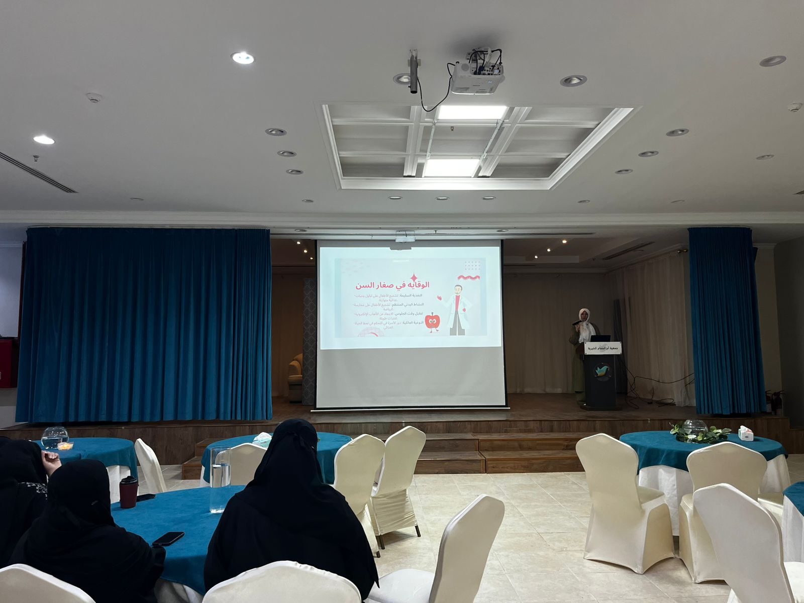 وفي ختام البرنامج، أُقيم ركن فحص وتحليل سكر الدم للحضور من منسوبي الجمعيّة والروضة وأولياء الأمور، بهدف تعزيز مفهوم الفحص المبكّر وتشجيع أفراد المجتمع على متابعة مؤشّراتهم الصحيّة والوقاية من المخاطر.