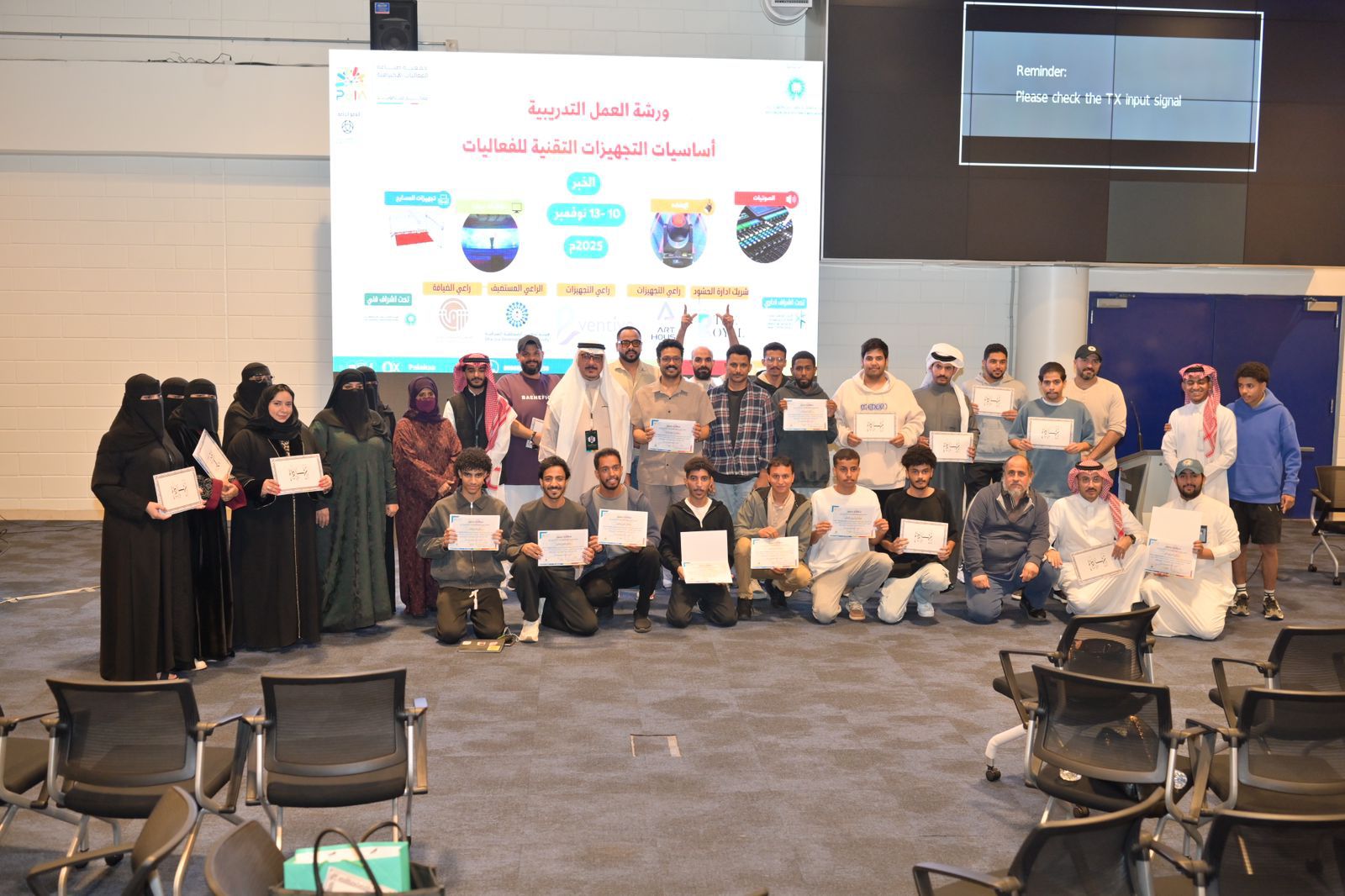 اختتمت جمعية صناعة الفعاليات الاحترافية مساء يوم الخميس ٢٢-٥-١٤٤٧هـ الموافق ١٣-١١-٢٠٢٥م ورشة أساسيات التجهيزات التقنيه للفعاليات