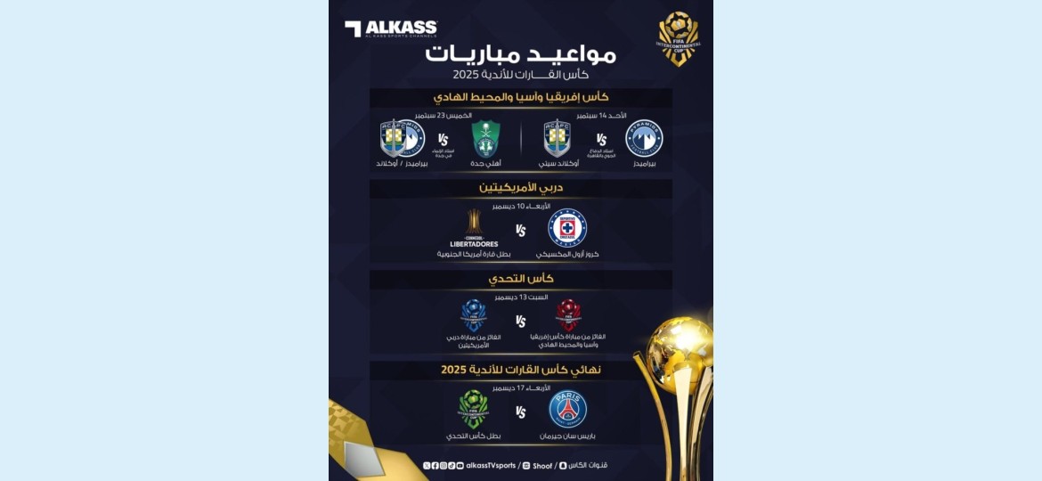 وتستضيف قطر المباريات الثلاث الختامية للبطولة على استاد أحمد بن علي أحد ملاعب مونديال 2022، وذلك لتحديد أفضل نادٍ في العالم لعام 2025.