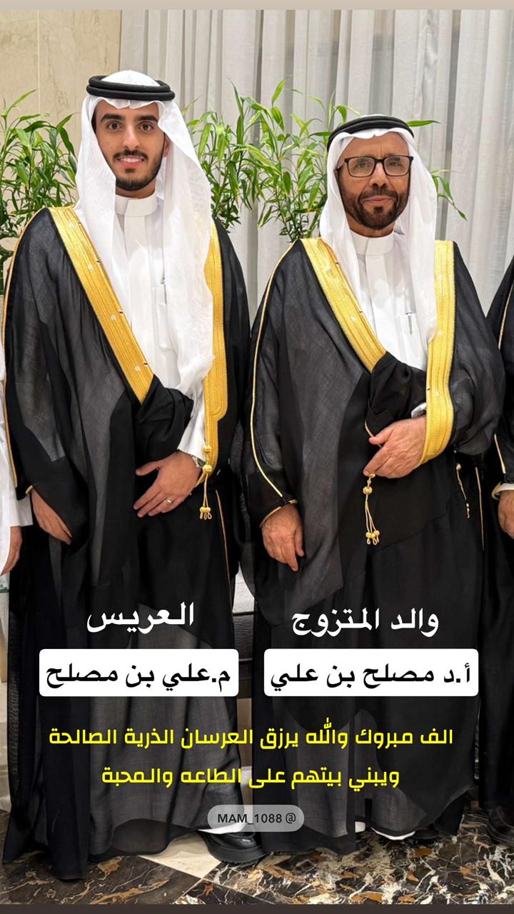 أقام الدكتور مصلح بن علي الشمراني مساء يوم الجمعة حفل زواج ابنه علي، وسط حضور كريم من الأقارب والأصدقاء وعدد من الشخصيات الاجتماعية والأكاديمية، الذين شاركوا الأسرة فرحتها وقدموا التهاني بهذه المناسبة السعيدة.