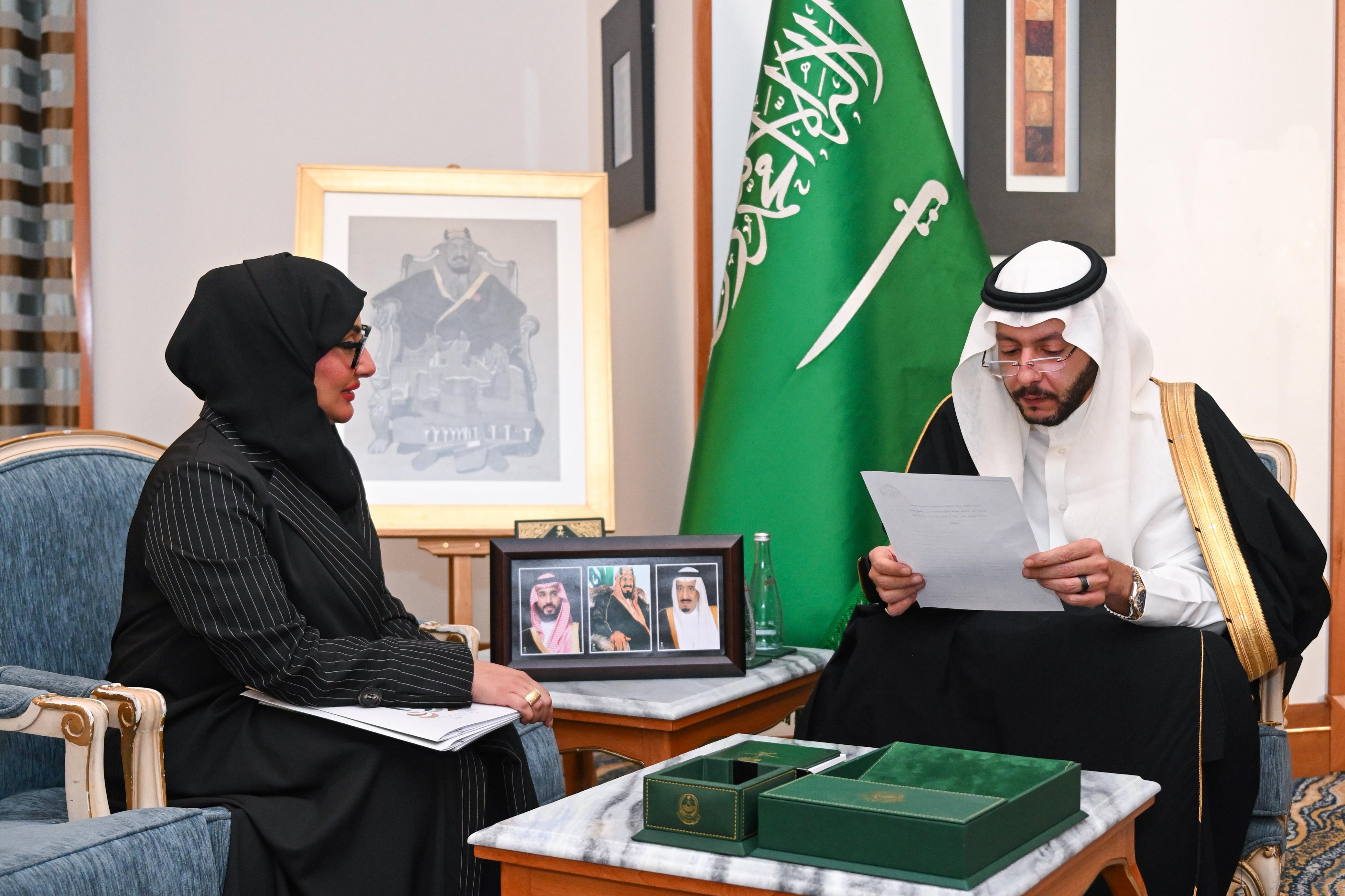 فيما قدَّمت الحامد لسموه تقريرًا عن الجوائز التي حصدتها الجمعية وفوزها بالمركز الأول في مسار خدمات البيئة، والمركز الثاني في مسار رعاية الأشخاص ذوي الإعاقة.