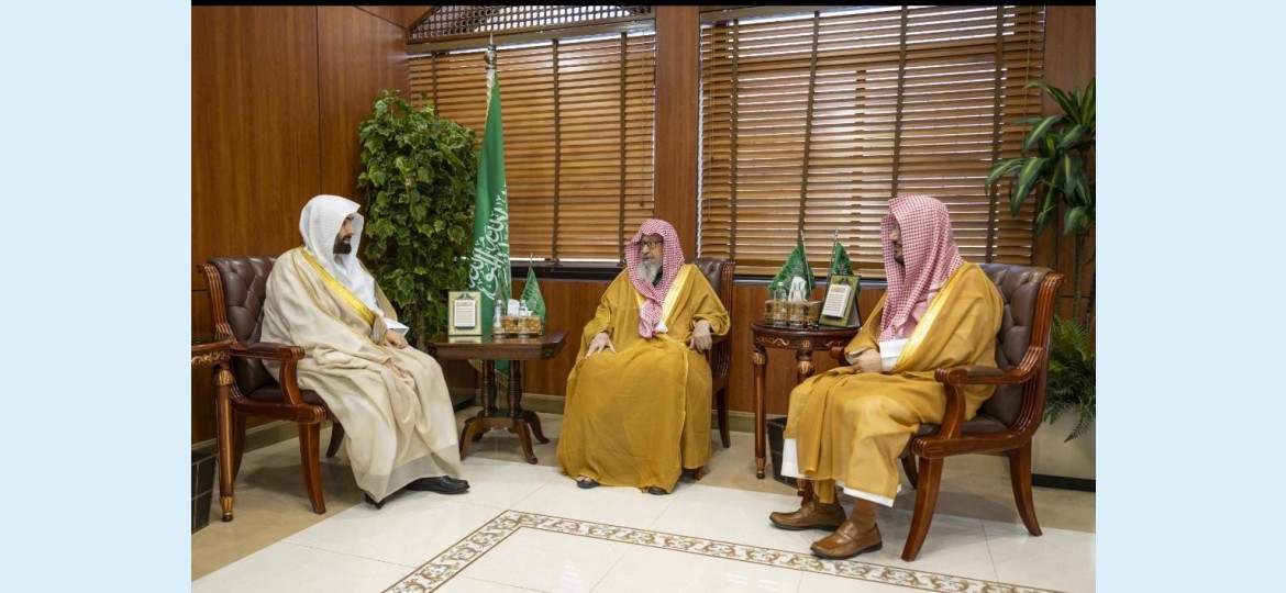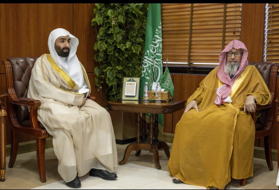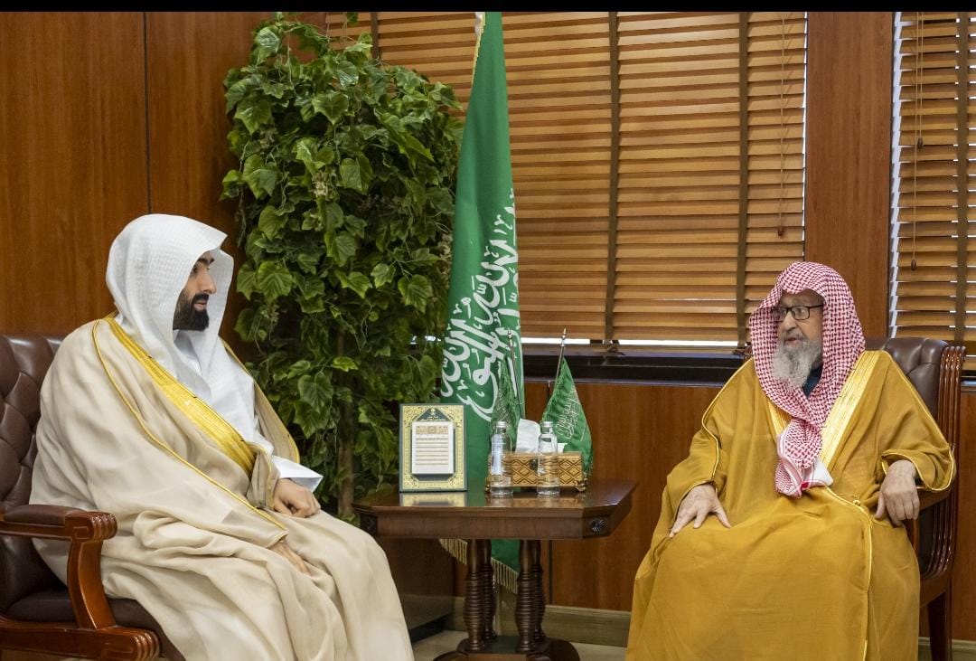 جاء ذلك خلال استقبال سماحته في مكتبه بالرئاسة العامة للبحوث العلمية والإفتاء بالرياض، اليوم الخميس 20 نوفمبر 2025، لمعالي رئيس ديوان المظالم رئيس مجلس القضاء الإداري الدكتور خالد بن محمد اليوسف.