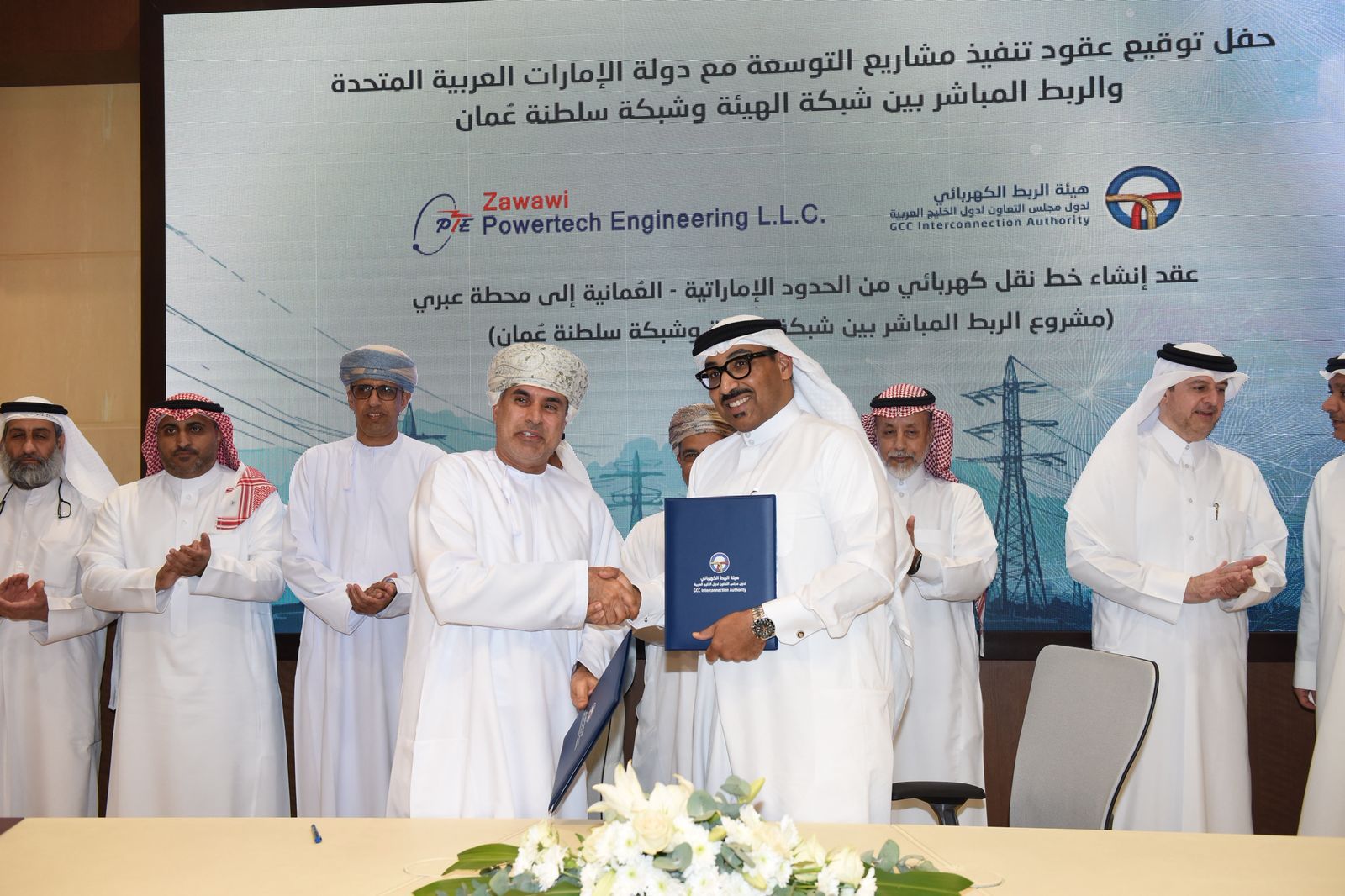 وقعت اليوم (الثلاثاء) هئية الربط الكهربائي لدول مجلس التعاون عقود تنفيذ مشاريع التوسعة مع دولة الإمارات العربية المتحدة والربط المباشر مع شبكة سلطنة عُمان، بقيمة 805 ملايين دولار ، وذلك بالمقر الرئيسي لهيئة الربط الكهربائي بمدينة الدمام، برعاية وكيل وزارة الطاقة والمعادن ورئيس مجلس إدارة هيئة الربط الكهربائي الخليجي المهندس محسن الحضرمي، بحضور أعضاء مجلس إدارة هيئة الربط، وُقّع العقود من جانب هيئة الربط الكهربائي الخليجي المهندس أحمد الإبراهيم، الرئيس التنفيذي، والرؤساء التنفيذين للشركات المنفذة.