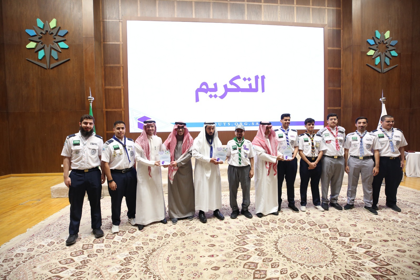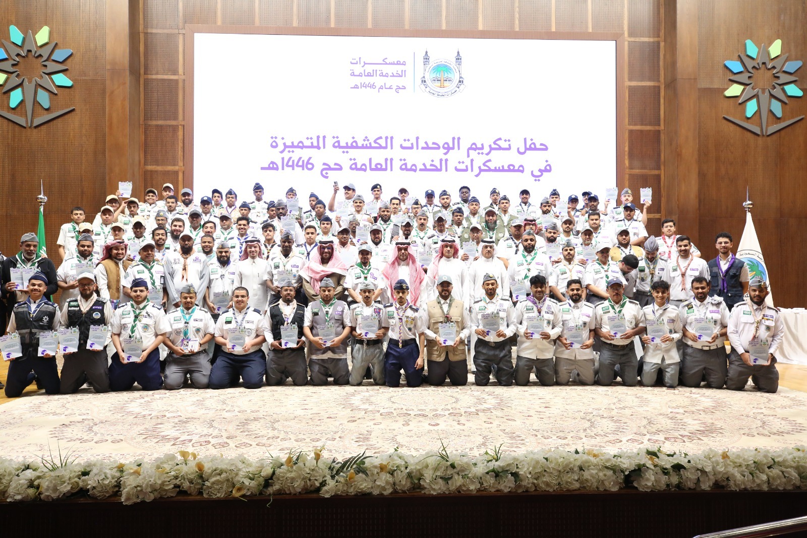 أقامت جمعية الكشافة العربية السعودية مساء اليوم حفلاً تكريمياً للوحدات الكشفية المتميزة في معسكرات الخدمة العامة لموسم حج 1446هـ، وذلك على مسرح الكلية التقنية بالرياض، بحضور المشرف العام على المعسكرات نائب رئيس الجمعية الدكتور عبدالرحمن بن إبراهيم المديرس، وعدد من مسؤولي القطاعات الكشفية بالمملكة.