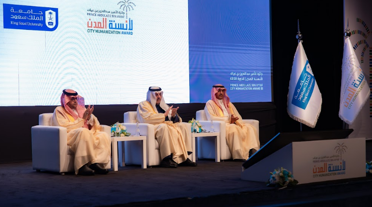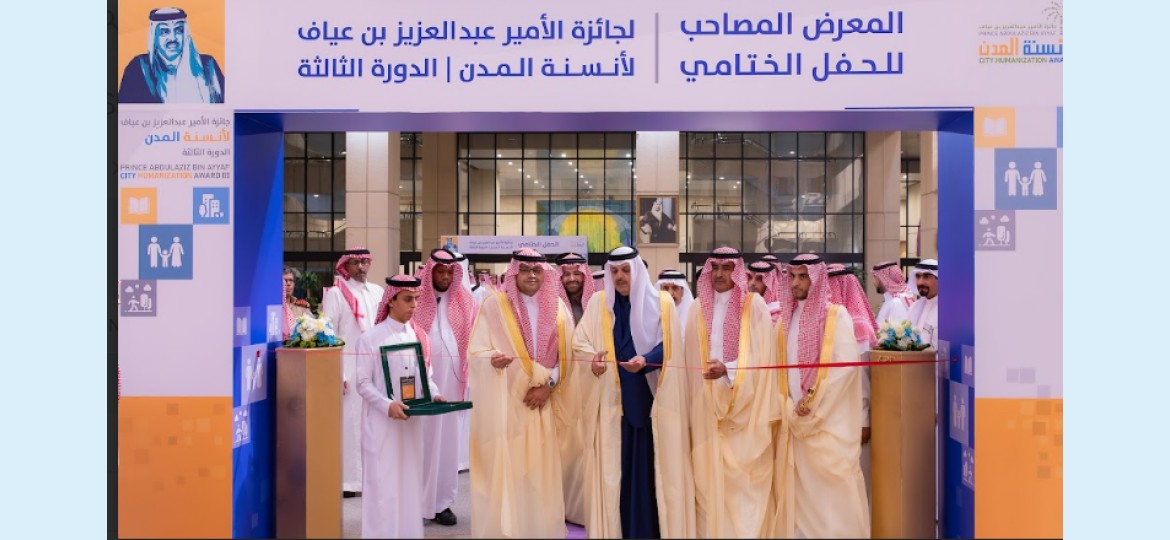 برعاية صاحب السمو الأمير الدكتور عبد العزيز بن محمد بن عيّاف، رئيس مجلس إدارة الجائزة، اختتمت جائزة الأمير عبدالعزيز بن عيّاف لأنسنة المدن بجامعة الملك سعود حفلها الختامي والمعرض المصاحب اليوم الأحد 16 جمادى الأولى 1447هـ الموافق 7 ديسمبر 2025م، وذلك بحضور رئيس الجامعة المكلّف الأستاذ الدكتور علي بن محمد مسملي، وجمع من أصحاب السمو والمعالي والقيادات الأكاديمية والخبراء والمتخصصين في التخطيط الحضري والعمارة، في حدث جسّد حضورًا علميًا ومهنيًا مميزًا.