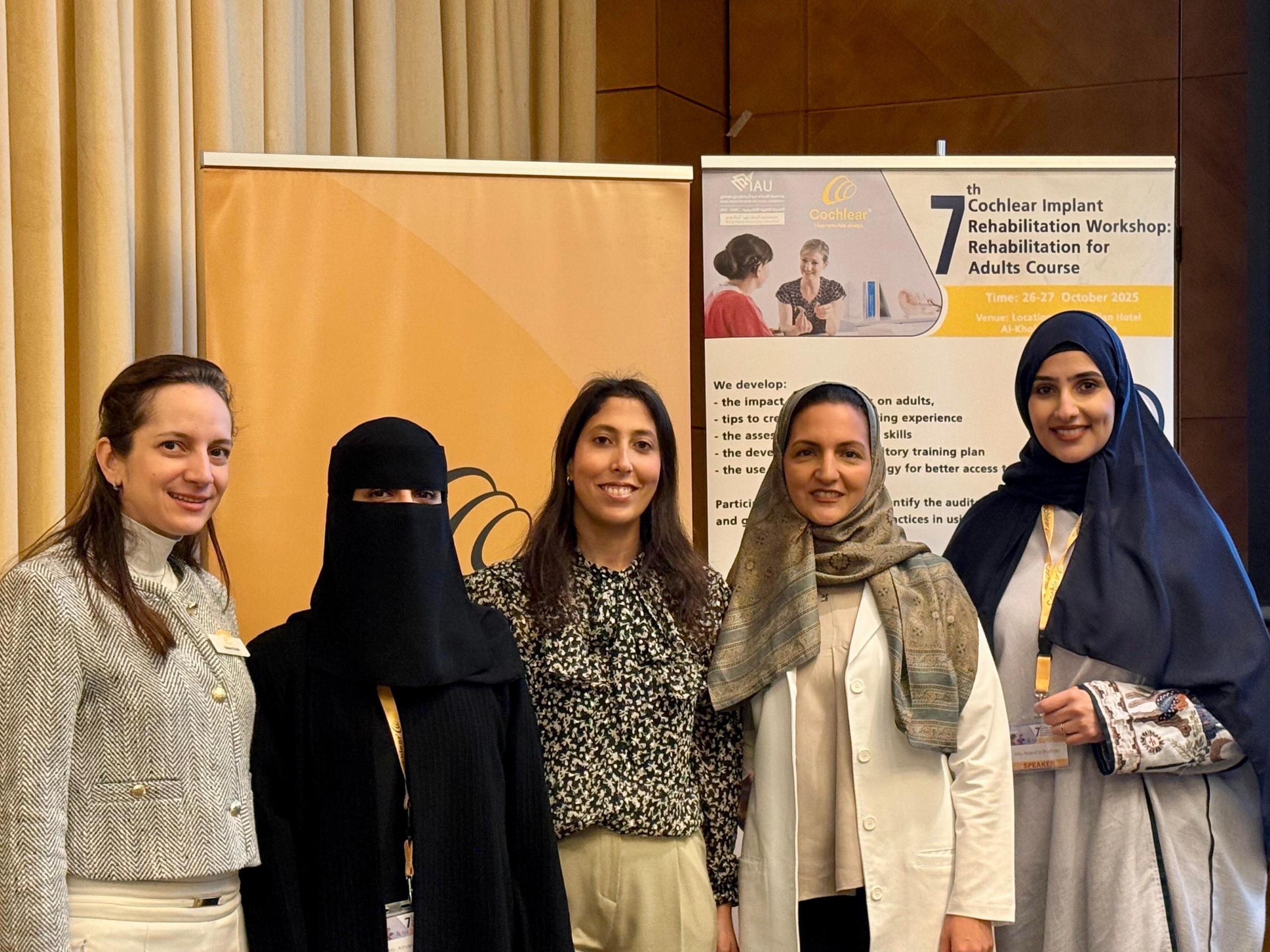 و جاءت ورشة التأهيل هذا العام ولأول مرة على مستوى المنطقة الشرقية والثالثة على مستوى المملكة، مخصّصة لتأهيل البالغين من زارعي القوقعة بحضور نخبة من أخصائيي النطق والتخاطب من مختلف المستشفيات والمراكز التخصصية بالمملكة ممن يمتلكون خبرة متقدمة في مجال التأهيل السمعي لزارعي القوقعة وقد سلّطت الورشة الضوء على فئة البالغين ما بعد اكتساب اللغة وهم الأشخاص الذين فقدوا سمعهم بعد أن كانت لديهم قدرة سمعية طبيعية، مما يجعل احتياجاتهم التأهيلية مختلفة في مجالاتها وأساليبها عن الأطفال فاقدي السمع وبالتالي تتطلب برامج أكثر تخصصًا.