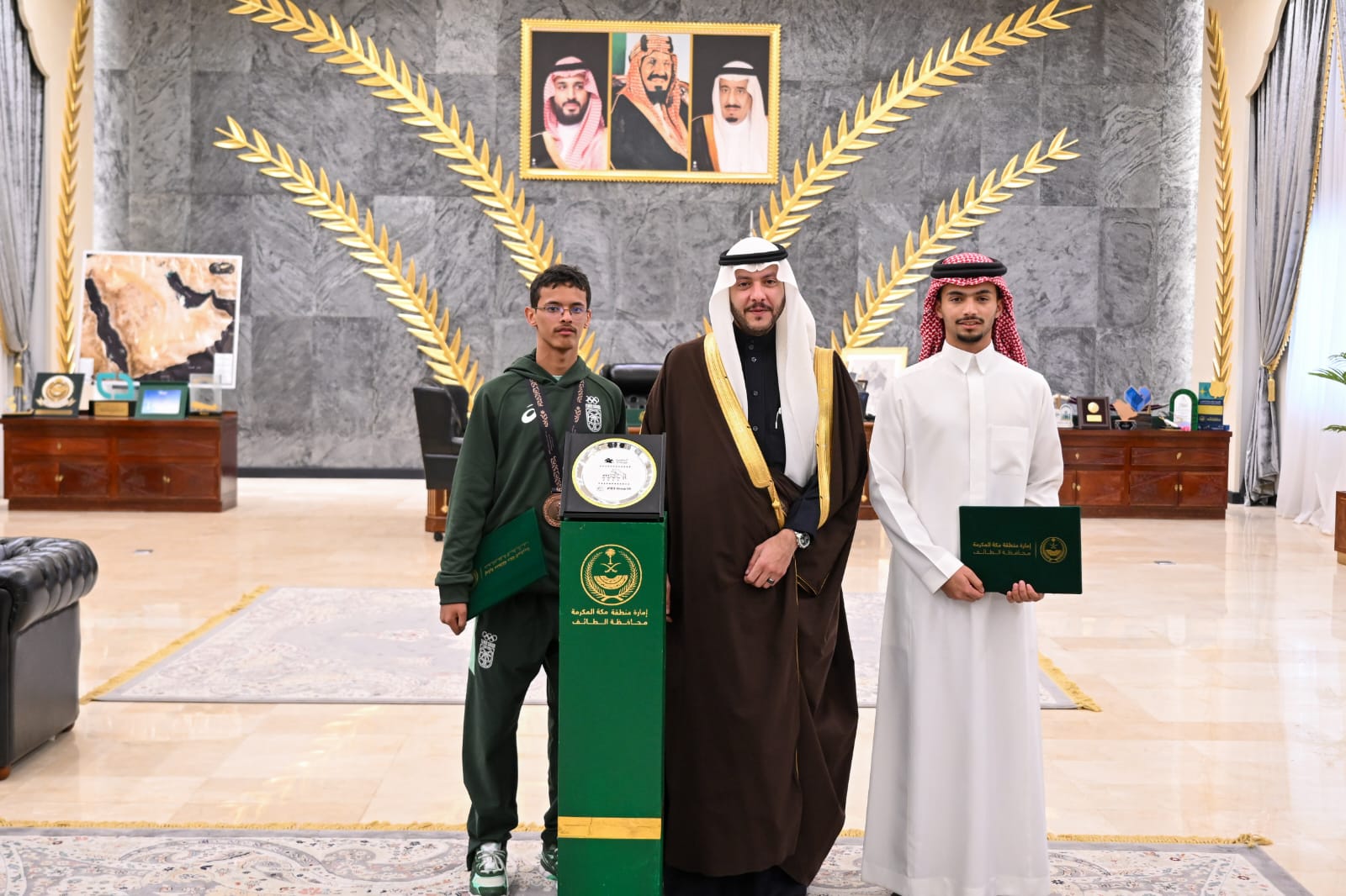 وأشاد سموّه بما حققه الفارسين من منجز رياضي يُضاف إلى سجل الوطن، مثمّنًا جهودهم، ومؤكدًا دعم المحافظة للمواهب الرياضية وتحفيزها على مواصلة التميز ورفع اسم المملكة في المحافل الإقليمية والدولية.