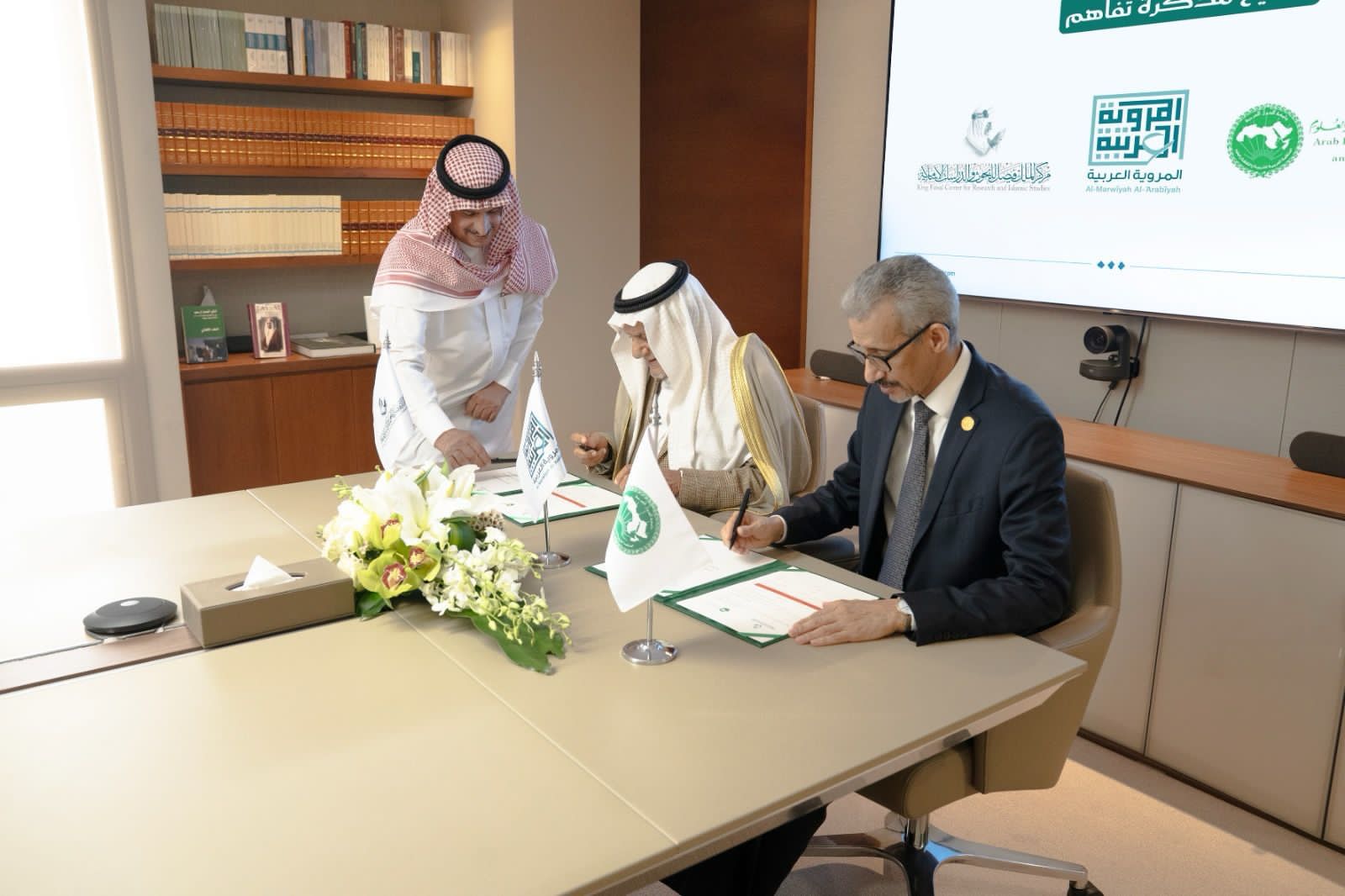 حيث مثّل المركزَ في مراسم التوقيع صاحب السمو الملكي الأمير تركي الفيصل رئيس مجلس إدارة المركز، فيما مثّل الألكسو معالي الأستاذ الدكتور محمد ولد أعمر المدير العام للمنظمة.