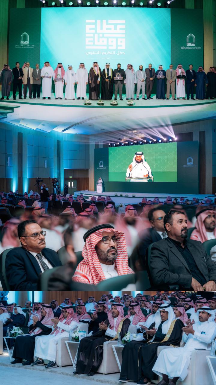 ورعى الحفل سعادة رئيس الجامعة الأستاذ الدكتور عبدالله بن عبدالعزيز التميم، بحضور وكلاء الجامعة، وعمداء الكليات، والعمادات المساندة، وأعضاء هيئة التدريس، والموظفين.