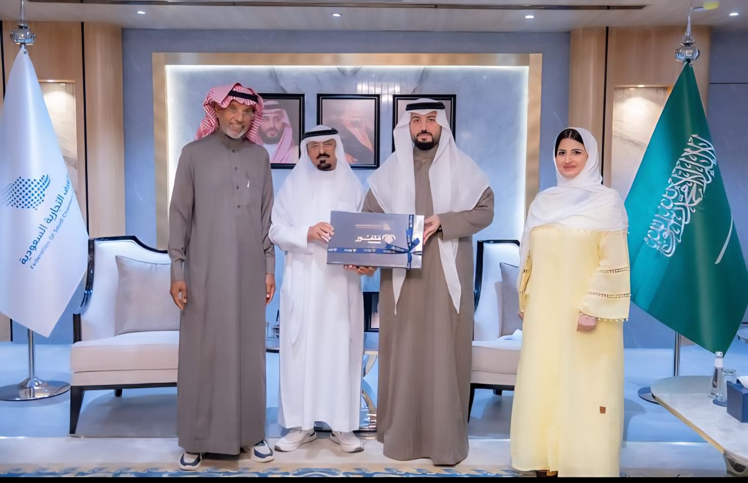 استقبل رئيس اتحاد الغرف التجارية والصناعية السعودية الأستاذ حسن معجب الحويزي، وفد نادي الإعلام الحديث، برئاسة الدكتور شافي العتيبي، وأعضاء مجلس إدارة النادي ، الأميرة هند بنت عبدالرحمن ، أ. خلف ملفي ، أ. سمر المقرن نائب الرئيس ، د. منال الرويشد ،د. إبتهال الشدوخي ، د. علاء القيسي ،د. رئيسة العمري ، م. عبدالرحمن شحات ، أ. فيصل العجلان ، أ. أميرة السهلي ، أ. هيلة العمري ،أ وجدان القحطاني ، في مستهل زيارتهم لمقر الاتحاد بالرياض، قبل أن يعتذر عن مواصلة الاجتماع لارتباطه باجتماع آخر.