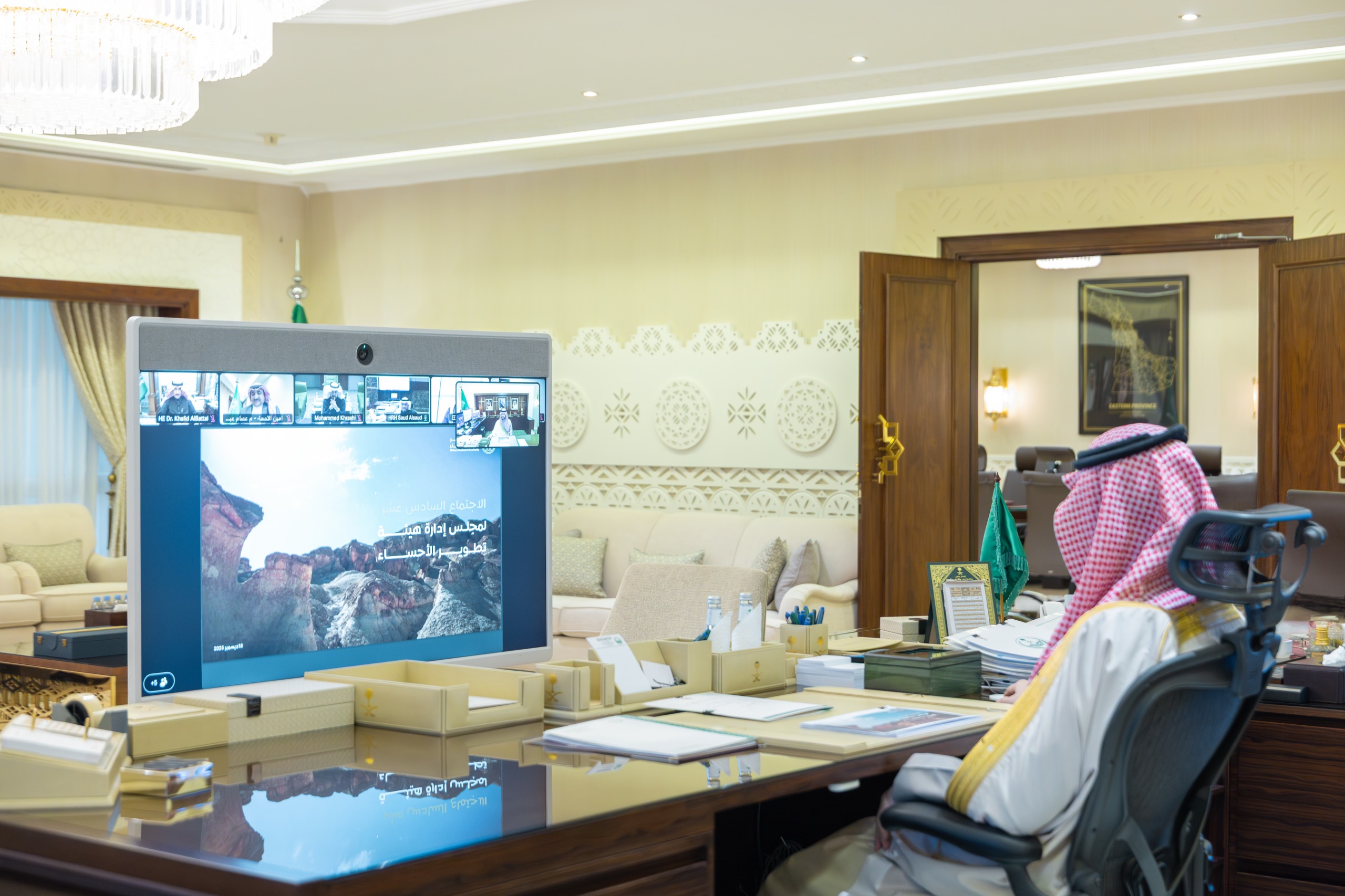 رأس صاحب السمو الملكي الأمير سعود بن بندر بن عبدالعزيز، نائب أمير المنطقة الشرقية رئيس مجلس إدارة هيئة تطوير الأحساء، اليوم الخميس، الاجتماع السادس عشر لمجلس الهيئة، الذي عُقد عبر الاتصال المرئي، بحضور صاحب السمو الملكي الأمير سعود بن طلال بن بدر محافظ الأحساء عضو مجلس إدارة هيئة تطوير الأحساء والرئيس التنفيذي، وأصحاب المعالي والسعادة أعضاء المجلس.
