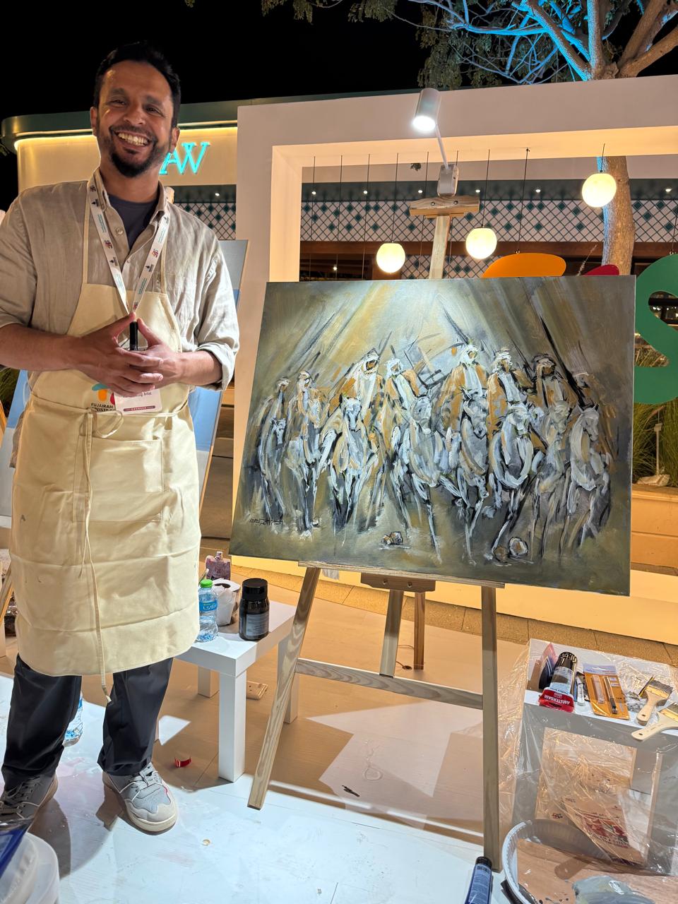 وقدّم العمري خلال الملتقى أربع لوحات فنية جسّدت تجربته الإبداعية ورؤيته التشكيلية، معبّرًا عن سعادته بهذه المشاركة التي أسهمت في توسيع آفاقه الفنية وتعزيز حضوره في المحافل الدولية، مشيرًا إلى أهمية مثل هذه الملتقيات في دعم الحوار الفني والتقارب الثقافي بين الفنانين من مختلف الدول.
