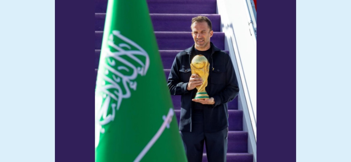 وتواجد نجما الكرة السعودية السابقين ماجد عبدالله وفؤاد أنور، في استقبال الكأس التي وصلت على متن طائرة خاصة إلى مطار الملك خالد الدولي بالرياض، حيث أزاح نجم المنتخب الإيطالي الفائز بكأس العالم وممثل الاتحاد الدولي لكرة القدم، أليساندرو ديل بييرو، الستار عن الكأس لدى وصولها، إيذانًا ببدء جولة تسبق انطلاق أكبر بطولة في تاريخ كأس العالم التي تستضيفيها الولايات المتحدة الأمريكية، والمكسيك، وكندا خلال الفترة من (11 يونيو إلى 19 يوليو 2026).