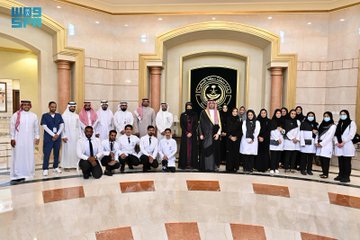 استقبل صاحب السمو الأمير سعود بن عبدالله بن جلوي محافظ جدة، في مكتبه بمقر المحافظة اليوم، رئيسة جامعة الملك عبدالعزيز المكلفة الدكتورة هناء بنت عبدالله النعيم، ومساعد مدير الشؤون الصحية للصحة العامة بجدة عبدالله الصحفي, وأعضاء برنامج "لنبادر" والمشاركين في الحملة العلاجية التوعوية لصحة الفم والأسنان.
