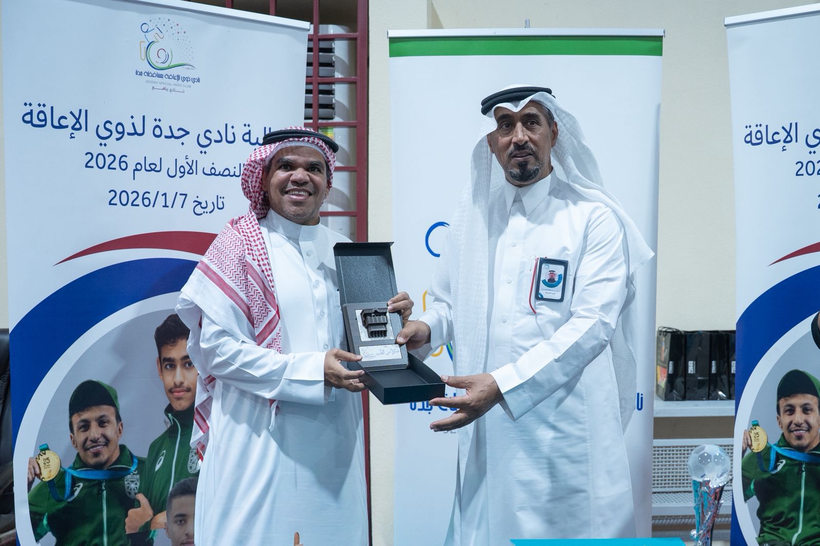 بدوره، أعرب الأستاذ علي بن عبدالله الضرمان، مدير نادي الحي بمتوسطة اليرموك بحي البغدادية بمحافظة جدة، عن شكره وتقديره لنادي ذوي الإعاقة بمحافظة جدة على ما يقدمه من برامج نوعية ومبادرات مجتمعية هادفة، مشيدًا بالدور المجتمعي للنادي، حيث قدّم هدية للنادي تمثلت في عضويات بنادي الحي المقام داخل مبنى المتوسطة، إضافة إلى شهادة شكر وتقدير للنادي، تقديرًا لجهوده في خدمة الأشخاص ذوي الإعاقة ودوره المجتمعي البارز.