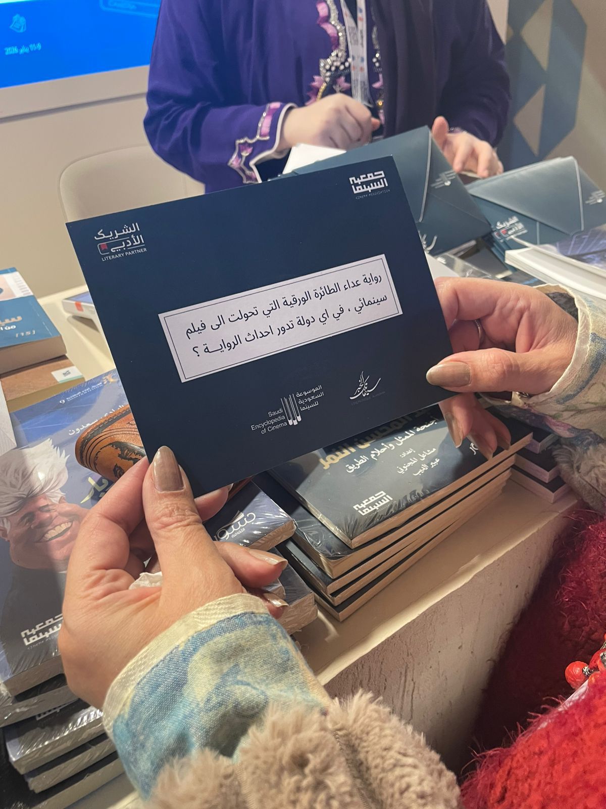 وضمن مشاركتها، قدّمت الجمعية تجربة تفاعلية ثقافية بعنوان «من الكتاب إلى الشاشة»، وذلك ضمن مبادرة الشريك الأدبي، تناولت التحوّلات التي تمر بها الروايات عند انتقالها من النص المكتوب إلى العمل السينمائي، عبر أسئلة معرفية تفاعلية أتاحت للزوّار الانخراط في نقاشات حول مسارات التحويل السردي بين الأدب والسينما.