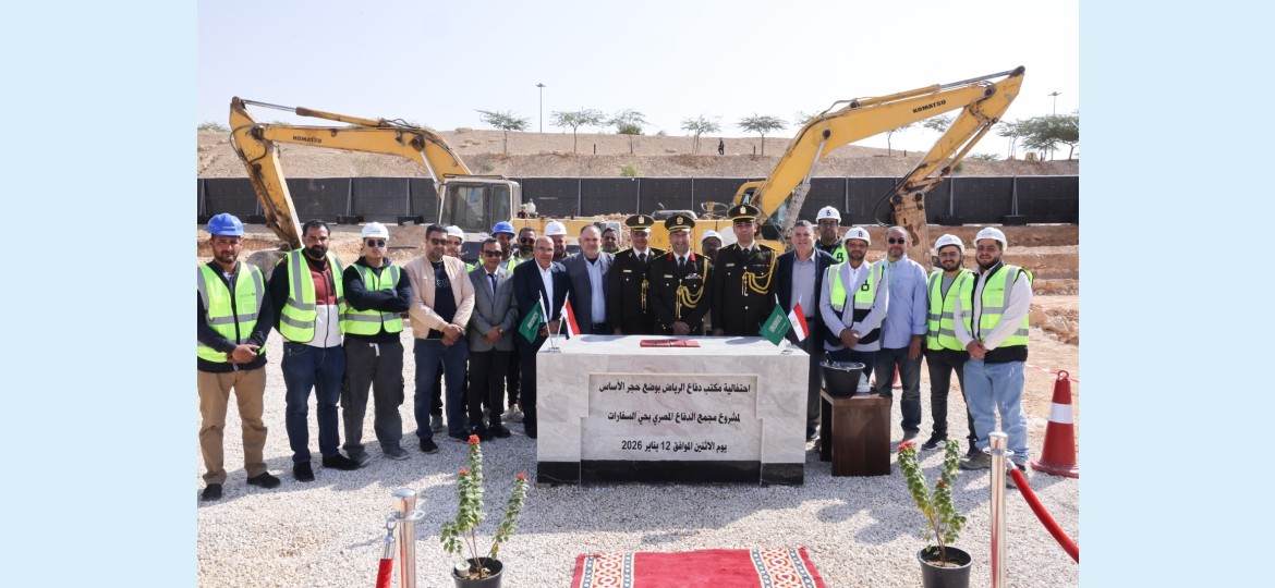 احتفل مكتب الدفاع المصري بالرياض اليوم الاثنين الموافق ١٢ يناير ٢٠٢٦ بوضع حجر الأساس لمشروع مجمع الدفاع الجديد بحي السفارات بالرياض وذلك بدعوة من العقيد أركان حرب شريف عفيفى ملحق الدفاع المصري بالرياض وبحضور السفير / ايهاب ابو سريع السفير المصري بالرياض وممثلي وزارة الدفاع بالمملكة العربية السعودية وبحضور أعضاء مكتب الدفاع واعضاء البعثة الدبلوماسية بالسفارة المصرية بالرياض والمهندس احمد البغدادي الرئيس التنفيذي للشركة المنفذة للمشروع شركة ثبات للإنشاءات المحدودة والدكتور علي الشعيبي رئيس مجلس إدارة مكتب البيئة استشاري المشروع.