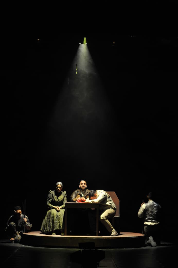 العرض المسرحي يدخلنا الى عالم مسرحي يشبه غرف تحكم شاسعة عالمٍ يبدو في ظاهره امتداداً لحياتنا المعلبة بين الأوامر الالكترونية وسيل الإشعارات لكنه يتحول تدريجيا الى سجن رقمي يعاد فيه إنتاج أشكال العنف التقليدية عبر وسائط اكثر نعومة في الشكل وأكثر شدة في الأثر.