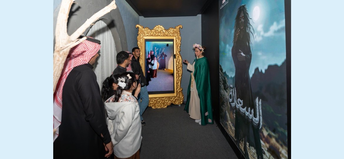 وأدخلت التفعيلة الزوّار من ممر استقبال تقوده شخصية "هيا"، في انتقال متدرّج من الواقع إلى فضاءات تخيلية أكثر اتساعًا، قبل أن تنفتح التجربة على قاعة أولى اعتمدت إضاءة هادئة، وحركة ظلال متداخلة، مع ملامح ليلية استحضرت عمق الصحراء.