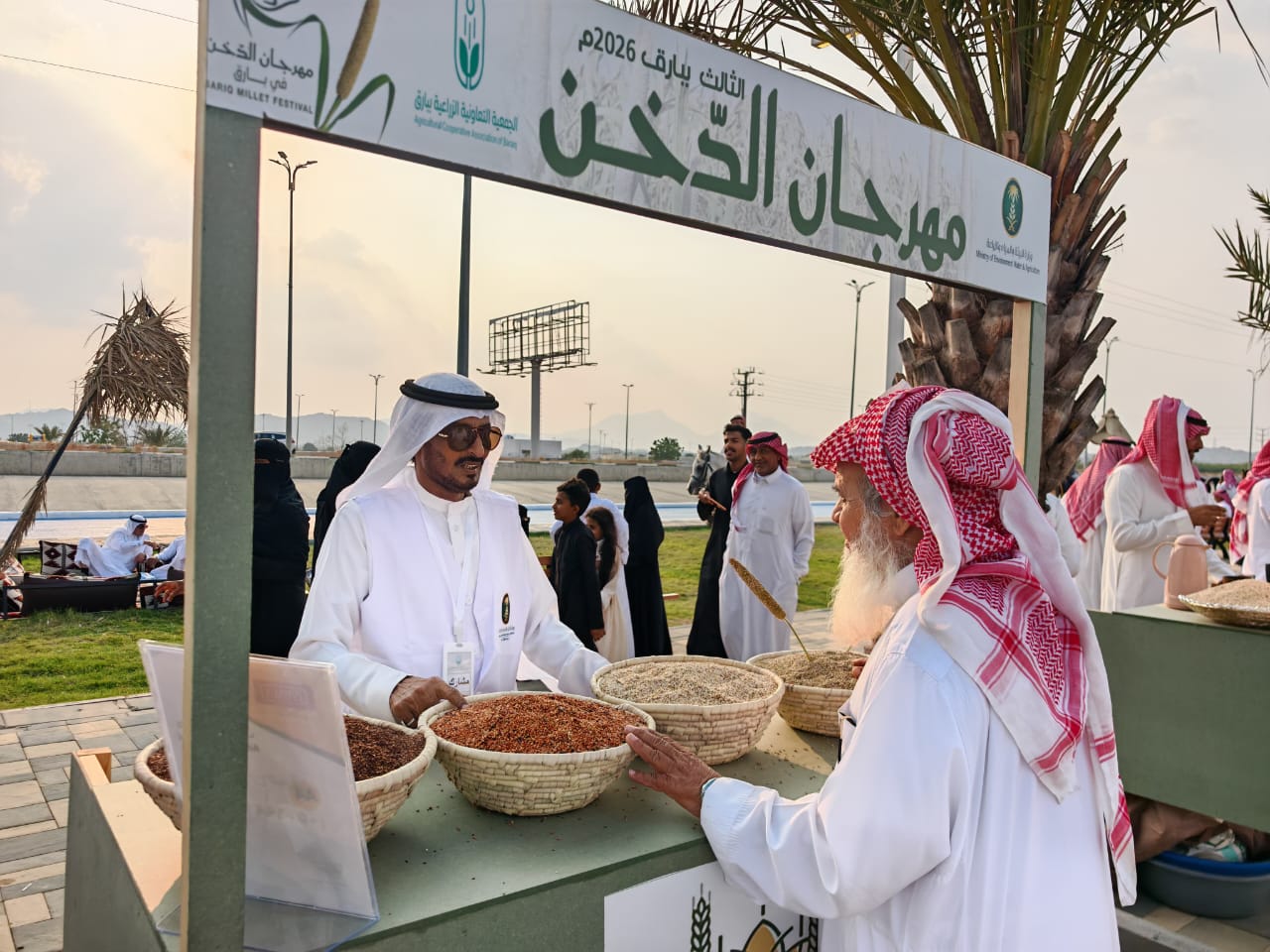 ويهدف المهرجان إلى إبراز أهمية محصول الدخن بوصفه أحد المحاصيل الزراعية التراثية في محافظة بارق والمنطقة، لما يتمتع به من قيمة غذائية عالية وملاءمته للبيئة المحلية، ودوره في دعم الأمن الغذائي وتعزيز الممارسات الزراعية المستدامة، وأبدى زوار المهرجان تفاعلًا لافتًا، التي ل3 ايام بممشى النخيل بمحافظة بارق، حيث يستقبل المهرجان الزوار يوميًا خلال الفترة المسائية.
