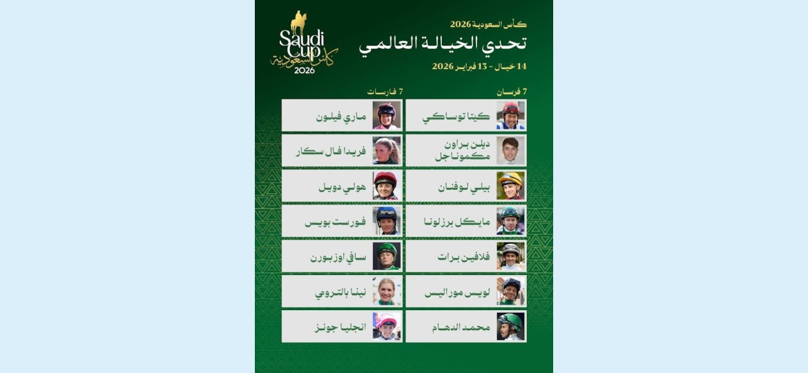وتضم قائمة الذكور اثنين من الخيالة المحليين وهما البنمي الأصل لويس موراليس، الذي تجاوز رصيده 600 فوز في المملكة العربية السعودية وحدها، إلى جانب حامل لقب النسخة الماضية محمد الدهام، الذي سجّل إنجازاً تاريخياً في عام 2025 بعدما أصبح أول خيّال سعودي يتوّج بلقب هذا التحدي.