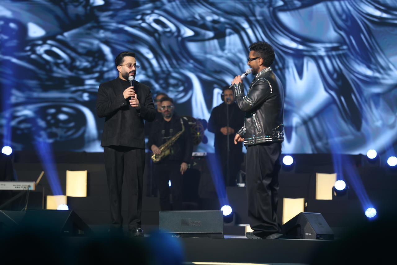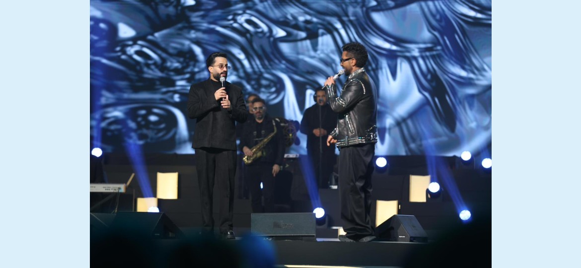 في ظل الإنجاز الجديد الذي أعلنه معالي المستشار تركي بن عبد المحسن آل الشيخ رئيس الهيئة العامة للترفيه عن تجاوز بلوغ عدد زوار موسم الرياض السادس 14 مليون زائر للان ولا يزال الرقم يتزايد ، ما يؤكد ان الرياض اصبحت وجهة سياحية يقصدها العالم، ويعكس النجاح الكبير الذي يحققه الموسم بجميع فعالياته، توجه النجمان الفنانان احمد سعد وهيفاء وهبي خلال حفلهما الكبير الذي اقامته "مجموعة روتانا للموسيقى" برعاية هيئة الترفيه، بالتهنئة والشكر لمعالي تركي آل الشيخ، والهيئة العامة للترفيه، وروتانا، والجمهور السعودي، على ما لقياه من نجاح يضاف لمشوارهما الفني، مثنين على إبداعات المستشار في جميع الجوانب وقائلين :"نحب ونحترم ما يقدمه المستشار للمملكة العربية السعودية.. وهذا يجعلنا نتعلم منه كيف يحب الانسان وطنه"؟، واشادا بحفاوة الاستقبال ودقة التنظيم وجمال الطبيعة ديكور والاضاءة وهندسة الصوت في مسرح الحفل "محمد عبده أرينا - بنك الإمارات دبي الوطني".