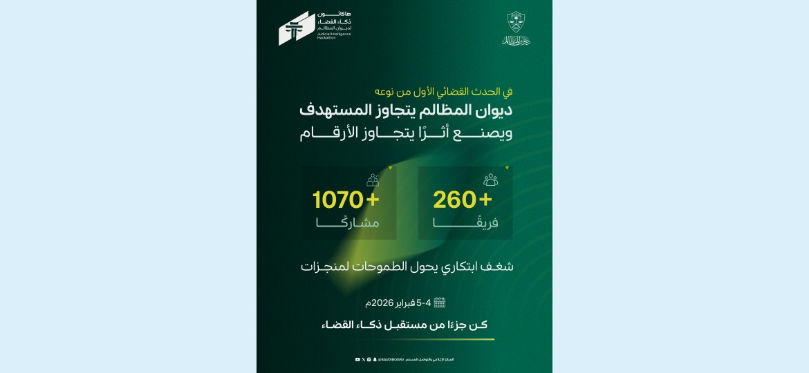 أعلن ديوان المظالم عن انتهاء مرحلة فرز الفِرق المتقدمة في هاكاثون ذكاء القضاء والتي بلغت أكثر من 260 فريقًا ابتكاريًا من مختلف التخصصات والجهات المشاركة، ضمّت أكثر من 1000 متنافس ابتكاري، تقدموا بأفكار ومقترحات ضمن مسارات الهاكاثون المعلنة مسبقًا.