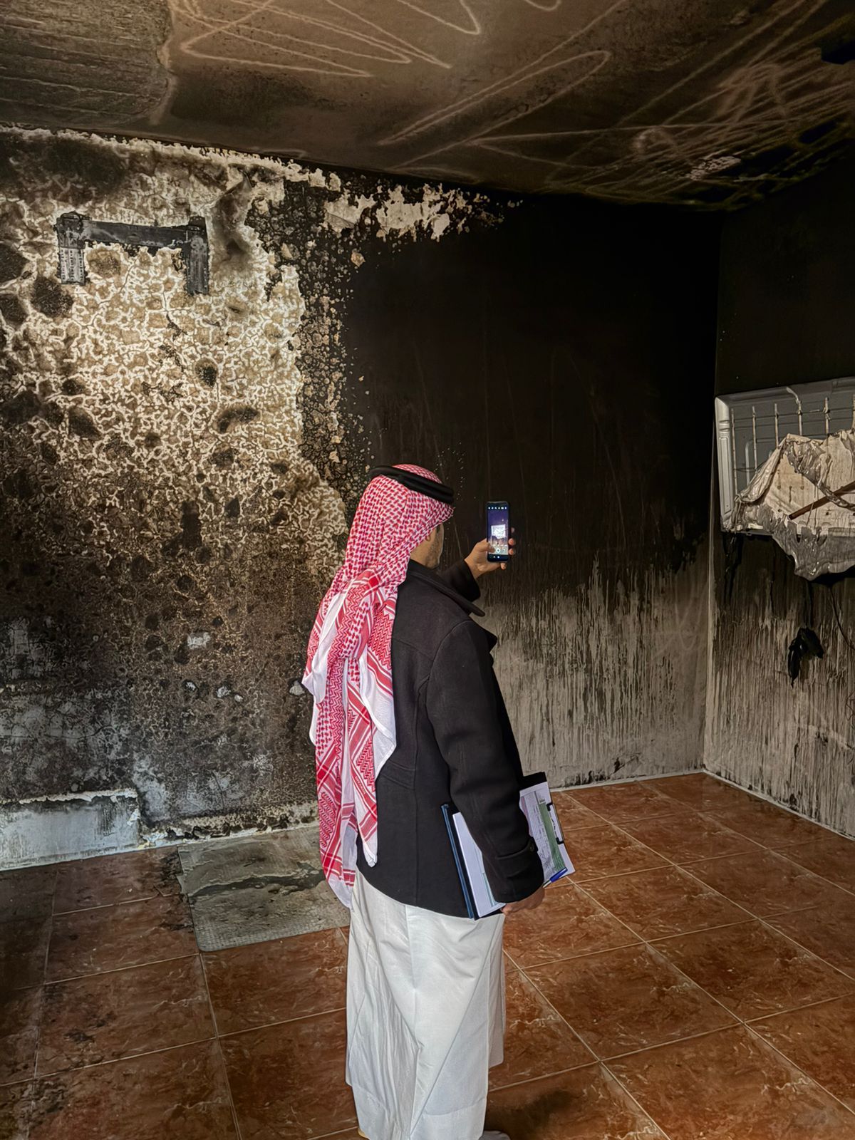 الـ 15,102 الف ريال تتمثل في (أعمال كهرباء، تلييس أجزاء من السقف، توفير غرف نوم وأسرة عدد ٣ للأبناء مع دواليب، تعديل الأبواب، توفير المفارش والمخدات، طقم كنب ٧ أشخاص، ٤ ستائر ، أشجار زينة ٤، سجادة، طاولة، وغير ذلك من الضروريات الناجمة من الحريق) .