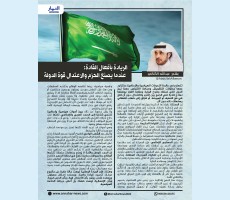 "وهكذا، فإن الريادة الوطنية ليست حالة عابرة، بل مشروع دولة، تحميه قيادة واعية، ويسنده إعلام مسؤول، ويعضده شعب يؤمن بأن الاعتدال قوة، وبأن الحزم ضرورة، وبأن الإنسانية ليست ضعفًا، بل أعلى درجات الحكمة السياسية".