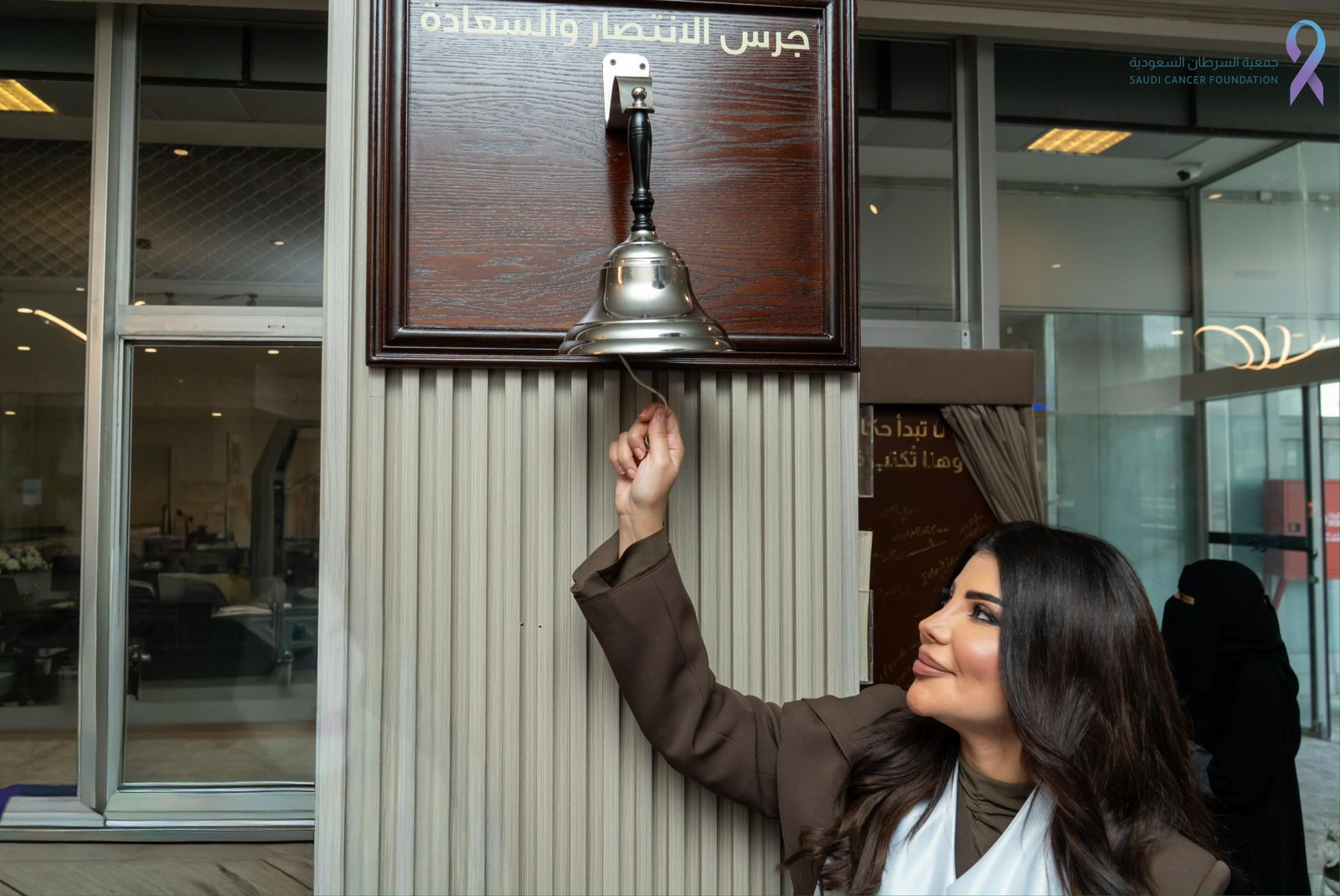 وتوجت الزيارة بـ "قرع الجرس"، معلنه الفنانة إلهام الفضالة رسمياً سفيرةً للجمعية وللأعمال الإنسانية لدعم خدمات الجمعية