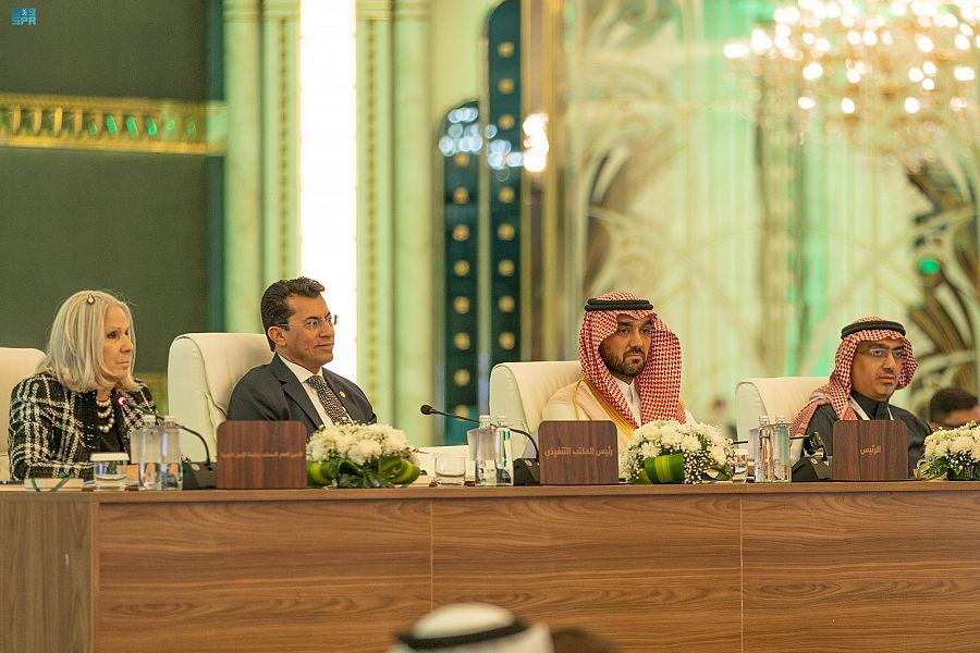وفي مستهل الاجتماع، تسلَّم سموُّ وزير الرياضة رئاسةَ اجتماع الدورة الـ 46 للمجلس، ثم ألقى سموُّه كلمةً، رحَّب فيها بأصحابِ السموِّ والسعادةِ في بلدهم الثاني المملكة العربية السعودية، مقدمًا شكره لخادمِ الحرمين الشريفين الملكِ سلمانَ بنِ عبدالعزيز آل سعود، ولسموِّ وليِّ عهده - حفظهما الله- على ما يقدمانه لشباب وفتيات الأمة العربية، من دعمٍ واهتمام، كان لهما أكبر الأثر في تطويرهم، وتميزهم، وإشباع شغفهم، بما ينعكس إيجابًا على وطننا الغالي.