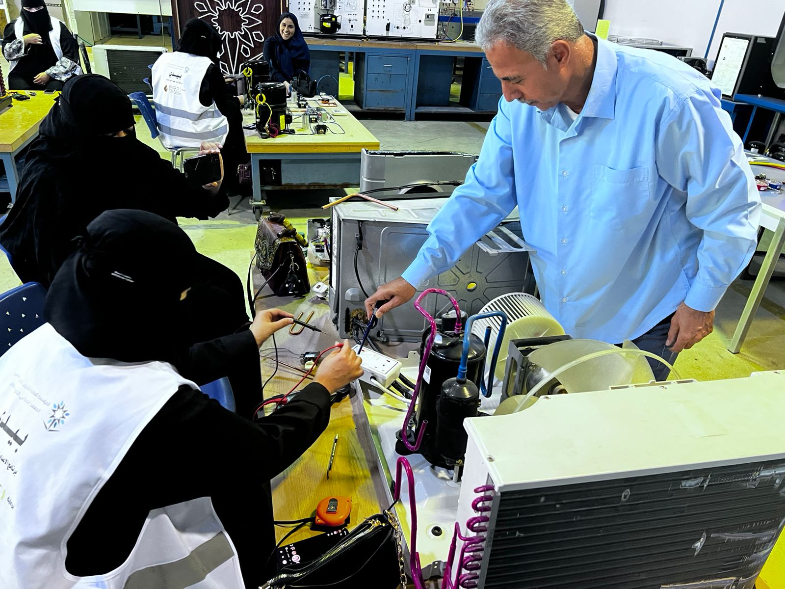وتضمّن البرنامج مسارًا تدريبيًا عمليًا ركّز على تنمية المهارات التطبيقية لدى المشاركات، حيث خضن تجارب ميدانية مباشرة في عدد من التخصصات التقنية، شملت أساسيات الكهرباء، ومبادئ ميكانيكا السيارات، وأعمال التمديدات الصحية، وأنظمة التكييف والتبريد، إضافة إلى عدد من البرامج المهنية والتأهيلية المساندة، بهدف بناء قاعدة معرفية ومهارية متكاملة تعزز جاهزيتهن لدخول المجالات التقنية بثقة وكفاءة.