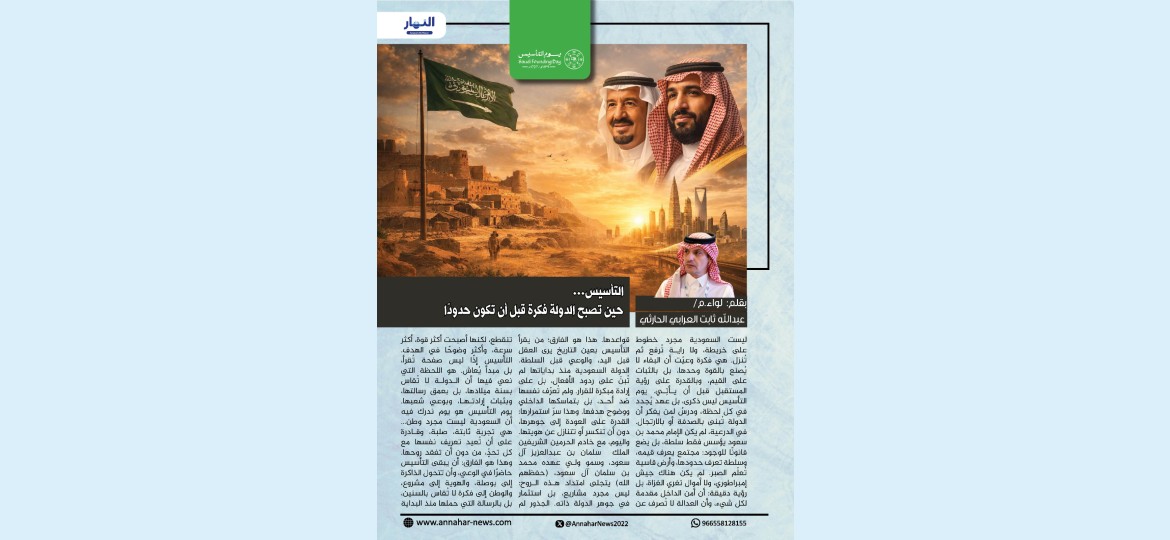 التأسيس إذًا ليس صفحة تُقرأ، بل مبدأ يُعاش. هو اللحظة التي نعي فيها أن الدولة لا تُقاس بسنة ميلادها، بل بعمق رسالتها، وبثبات إرادتها، وبوعي شعبها. يوم التأسيس هو يوم ندرك فيه أن السعودية ليست مجرد وطن… هي تجربة ثابتة، صلبة، وقادرة على أن تُعيد تعريف نفسها مع كل تحدٍّ، من دون أن تفقد روحها.